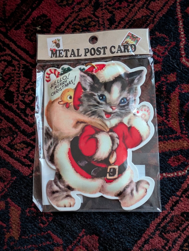 約10×13cm メタル素材でオーナメントにもなり、切手を貼って送ることもできます。 レトロな雰囲気の絵がとてもかわいらしいです。 ※商品の色は明るさや照明の色、角度などにより写真とは異なって見えることがございます。ご了承くださいませ。
