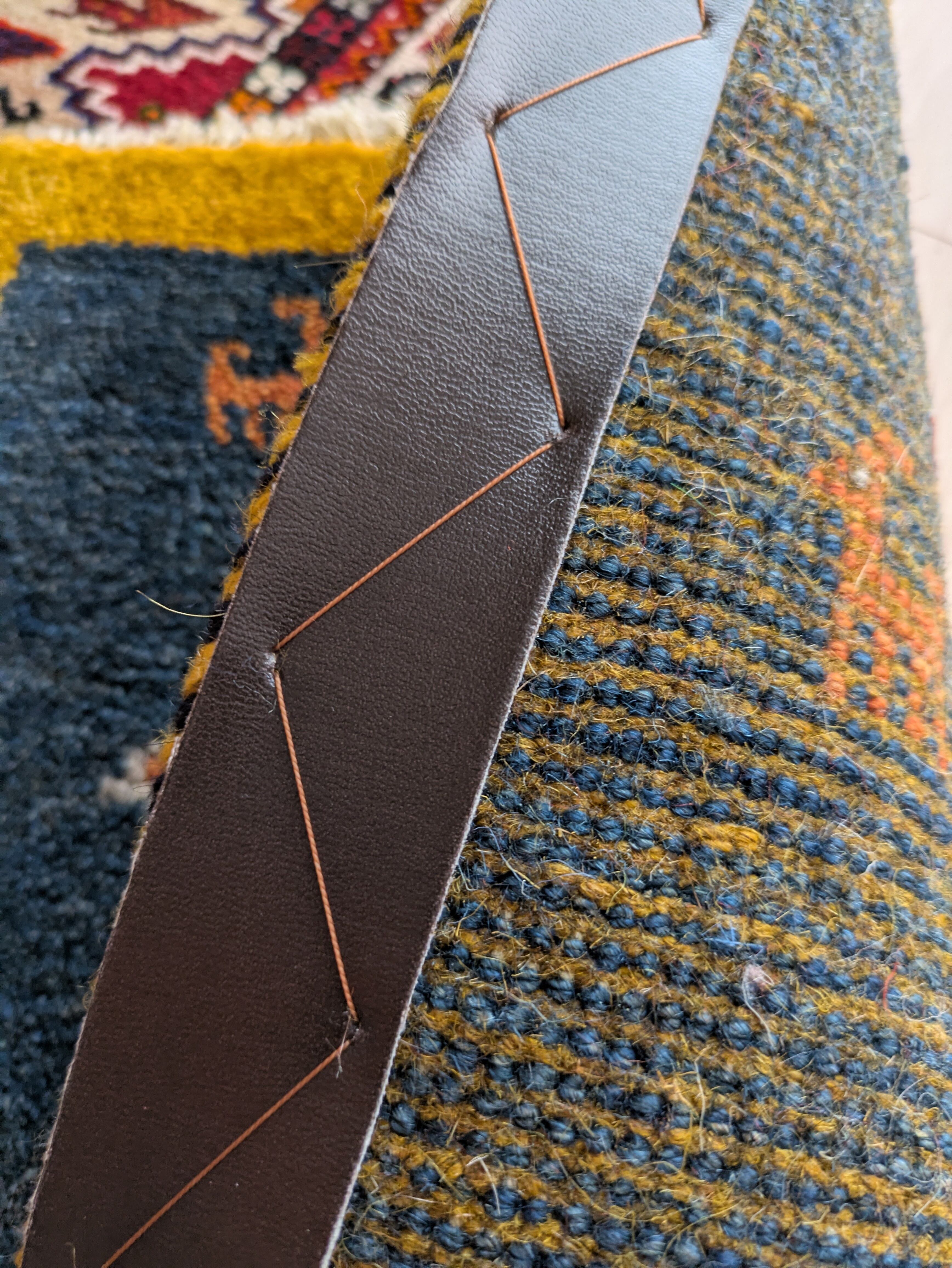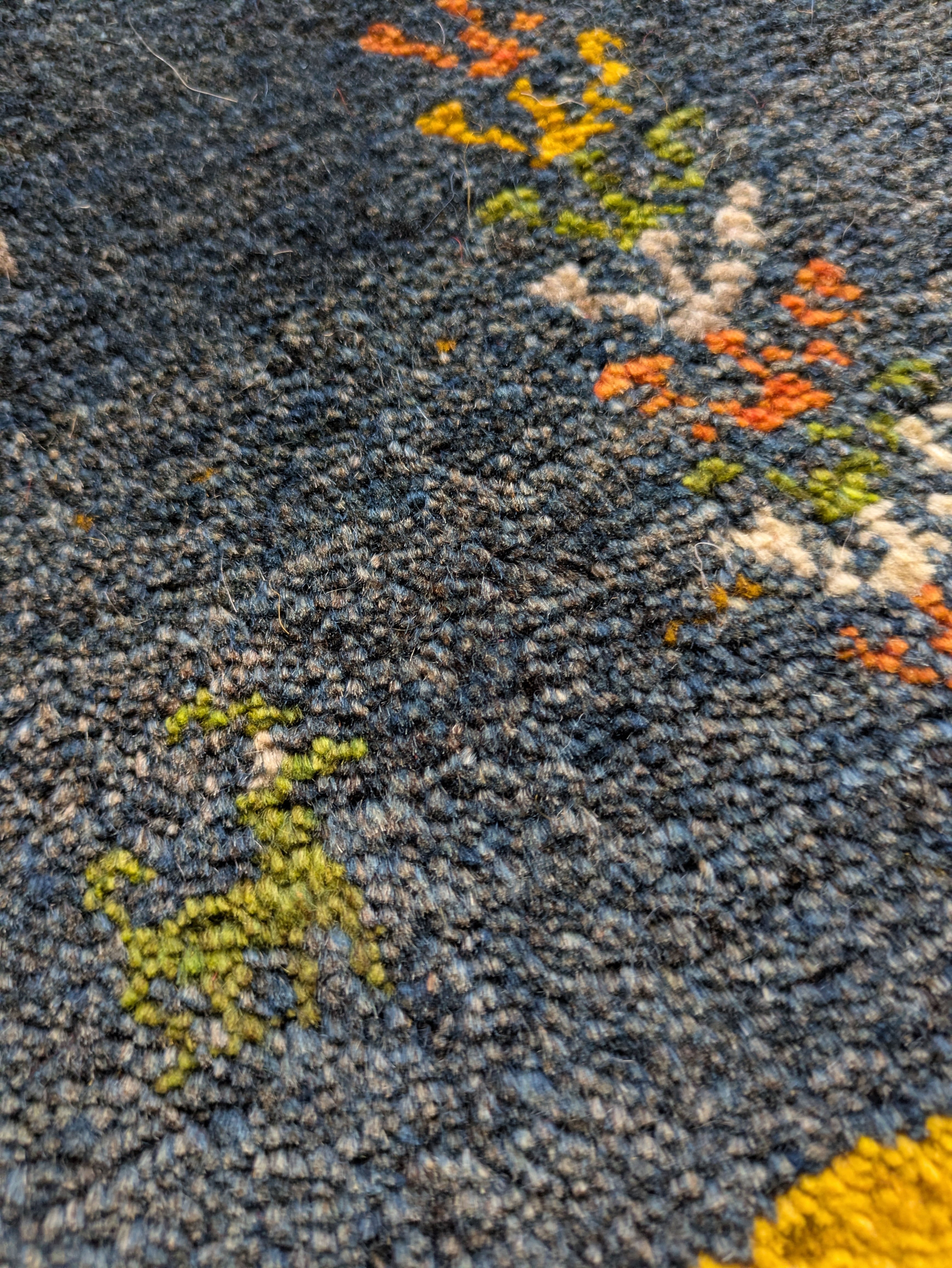 深い藍染のブルーとイエローが鮮やかな1枚です。ピンクの鹿柄もかわいいです。