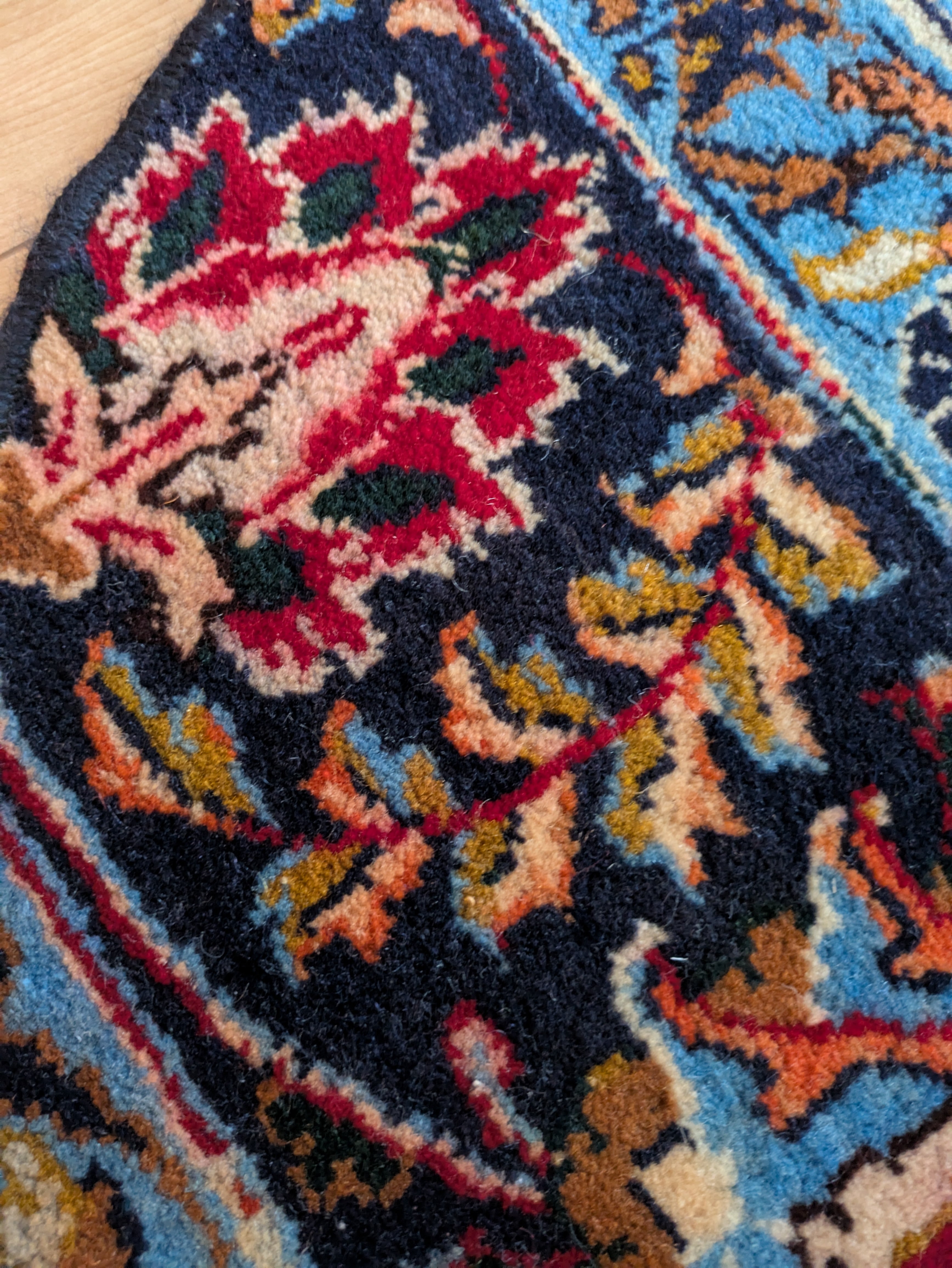 ヴィンテージのトライバルをリメイクして作った、オーバルのラグです。玄関マットにもおすすめのサイズです。その他にも足元のアクセントにいろいろなところでお使いいただけるかと思います。