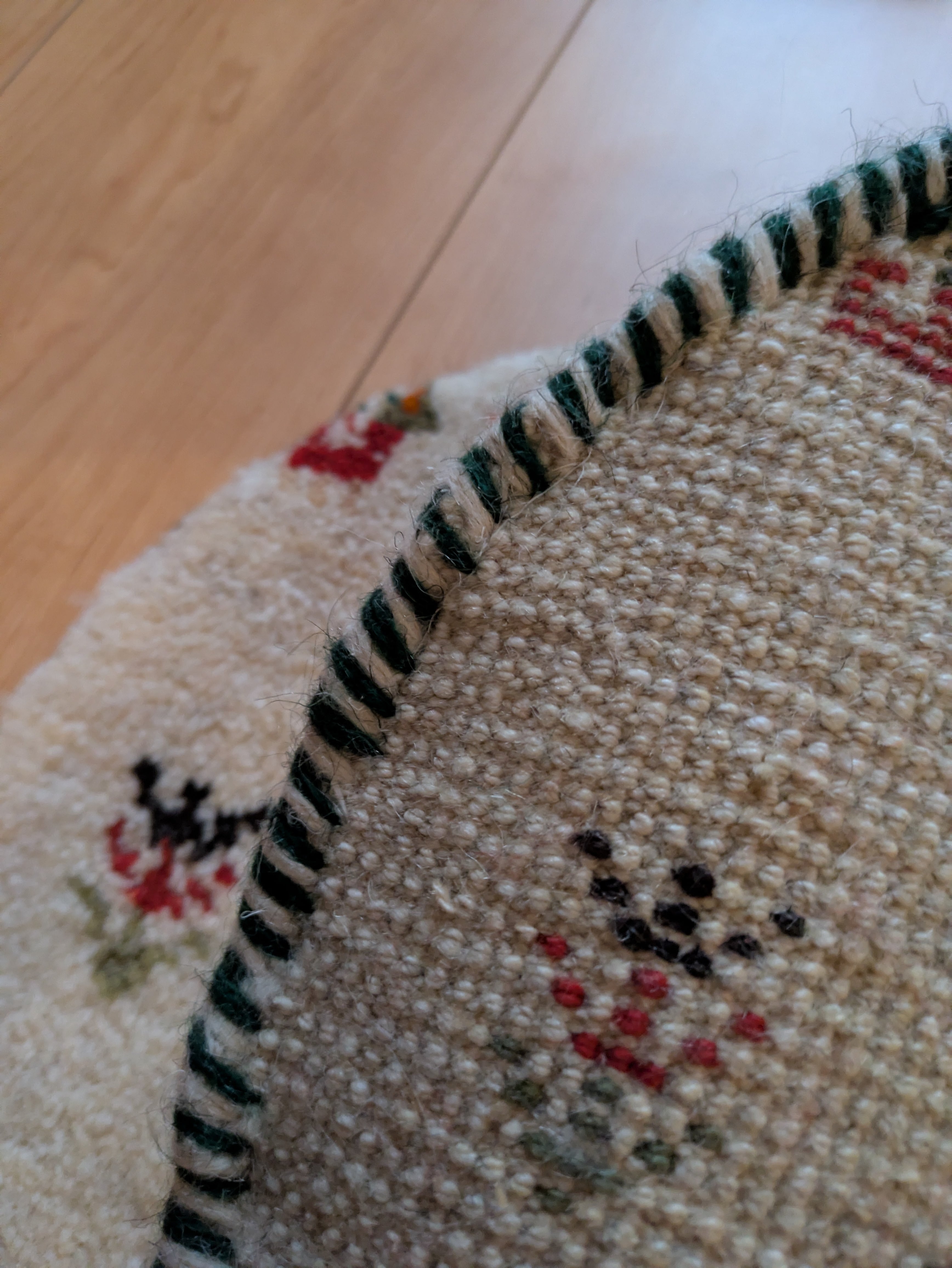 ナチュラルホワイトにカラフルな糸で生命の木が織り込んであります。