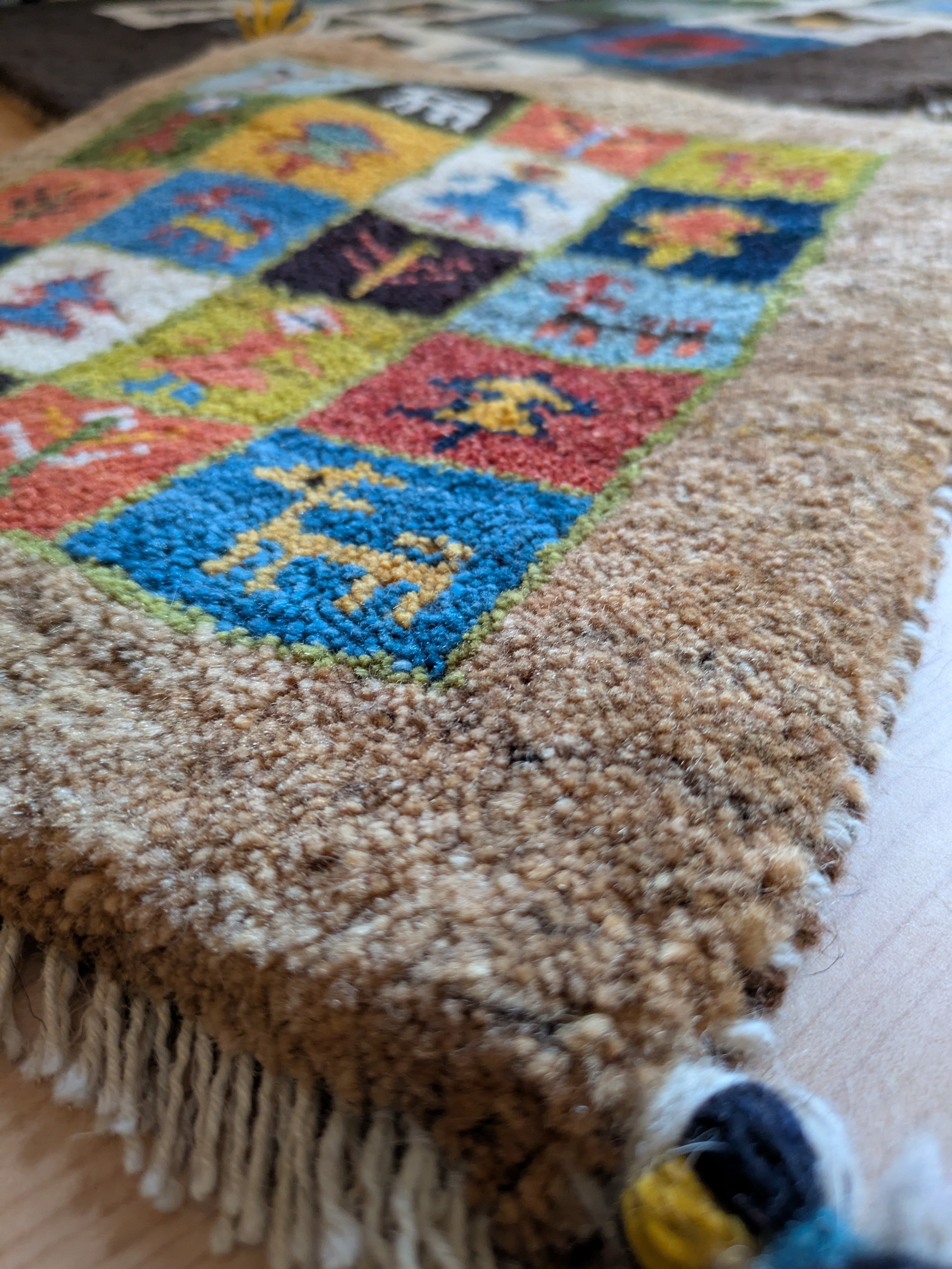 ミニギャッベには珍しい女の子の柄が織り込まれています。