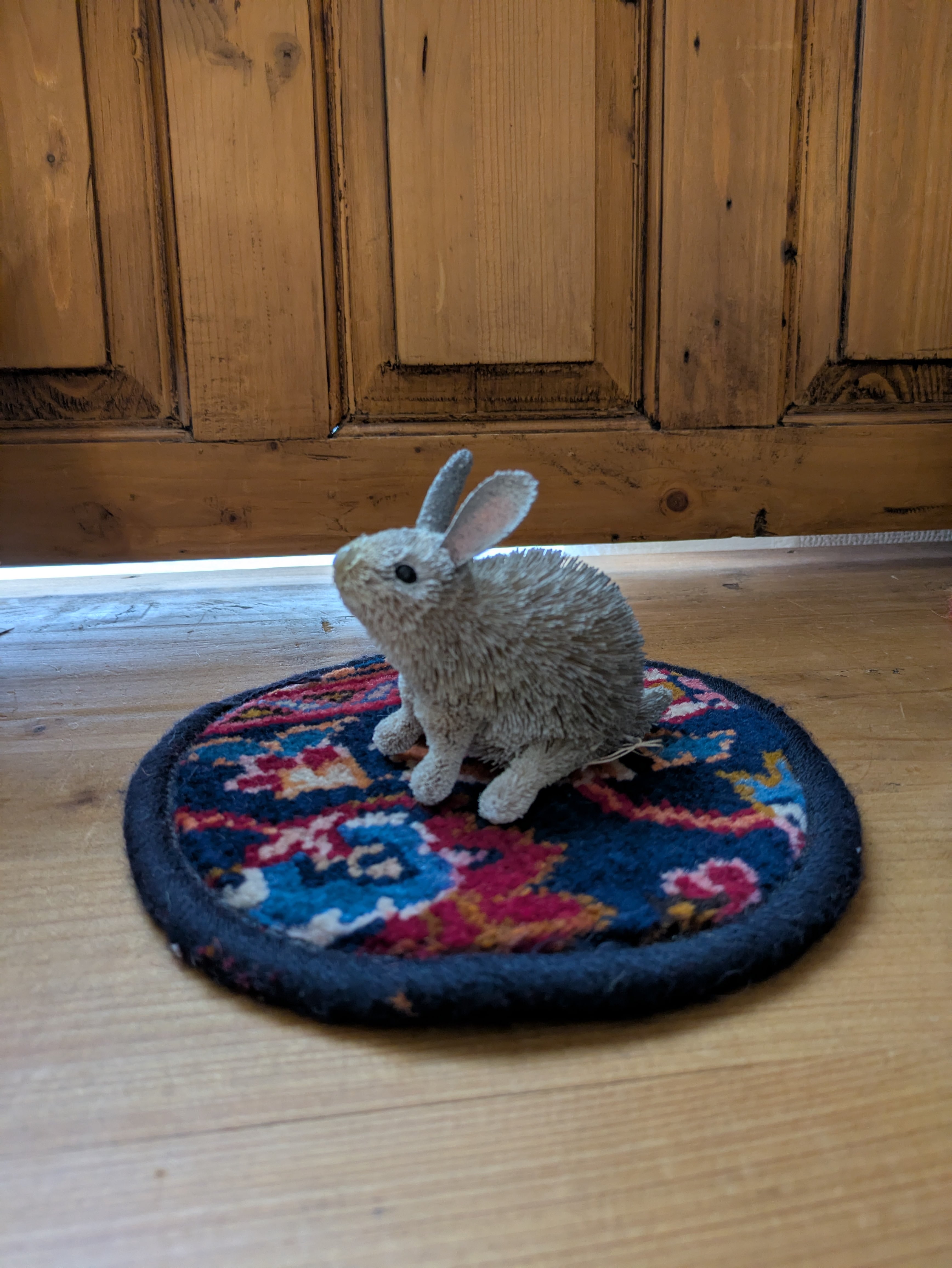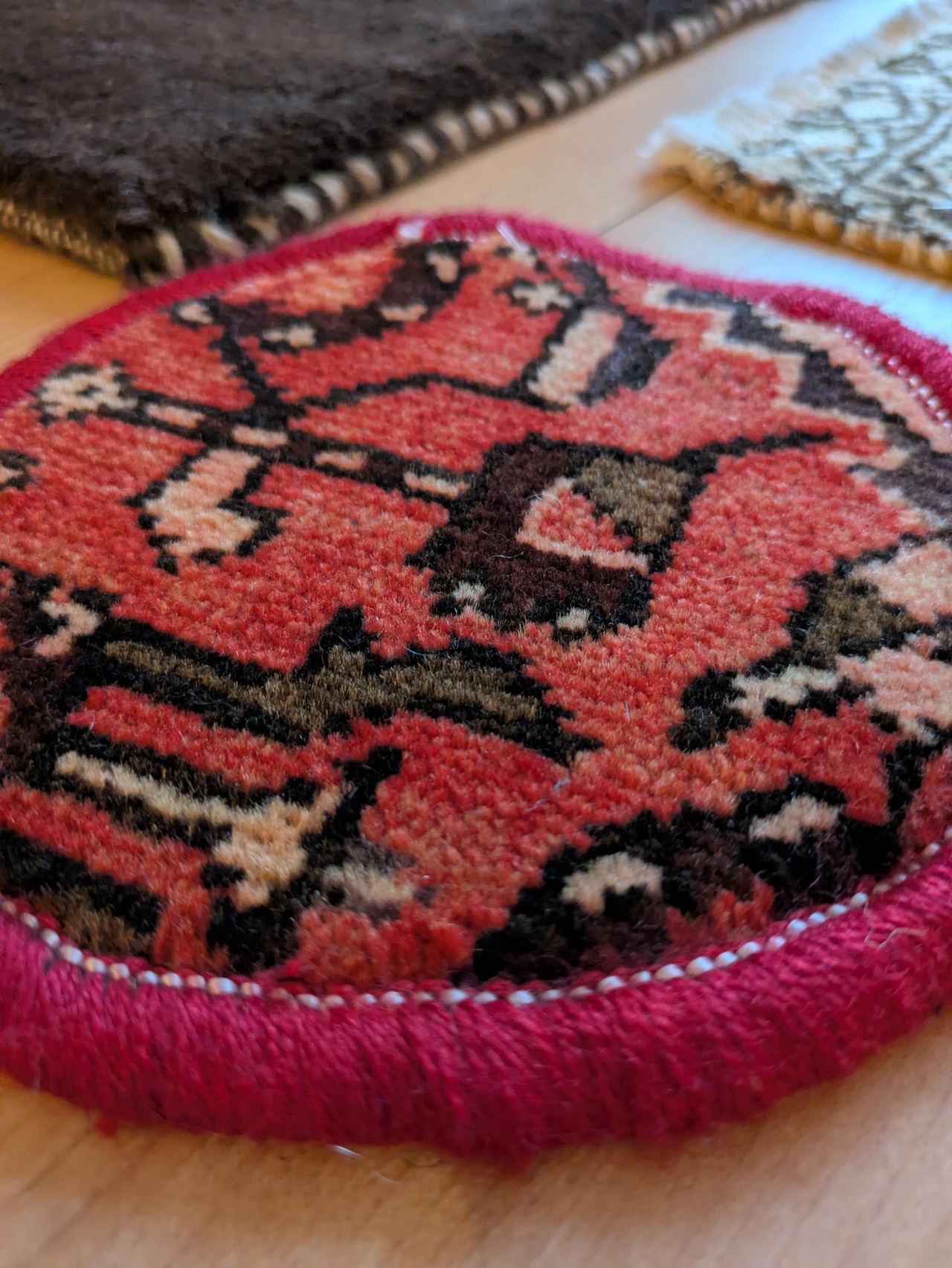 ヴィンテージのトライバルラグをリメイクして作った、小さい丸いラグです。