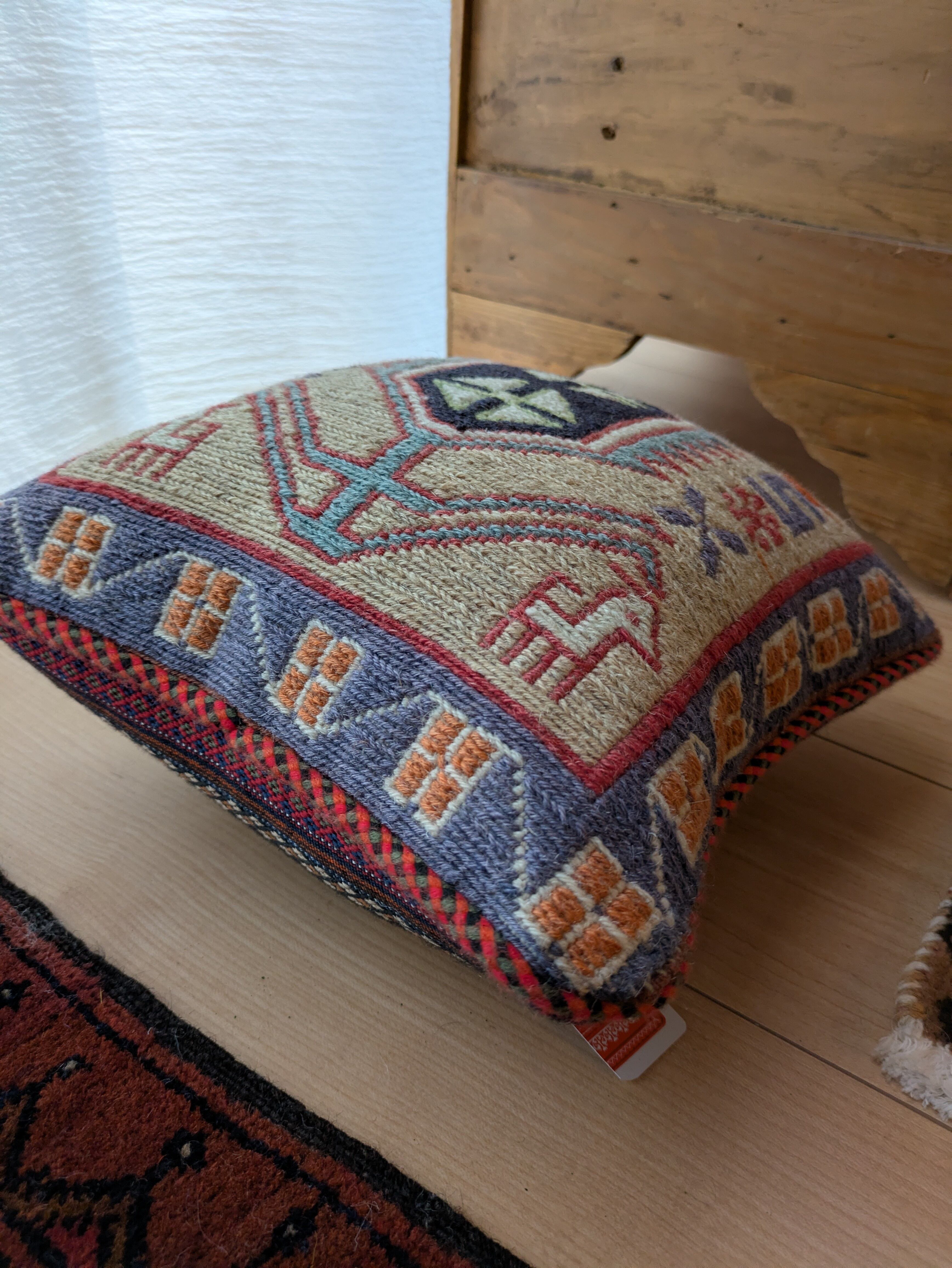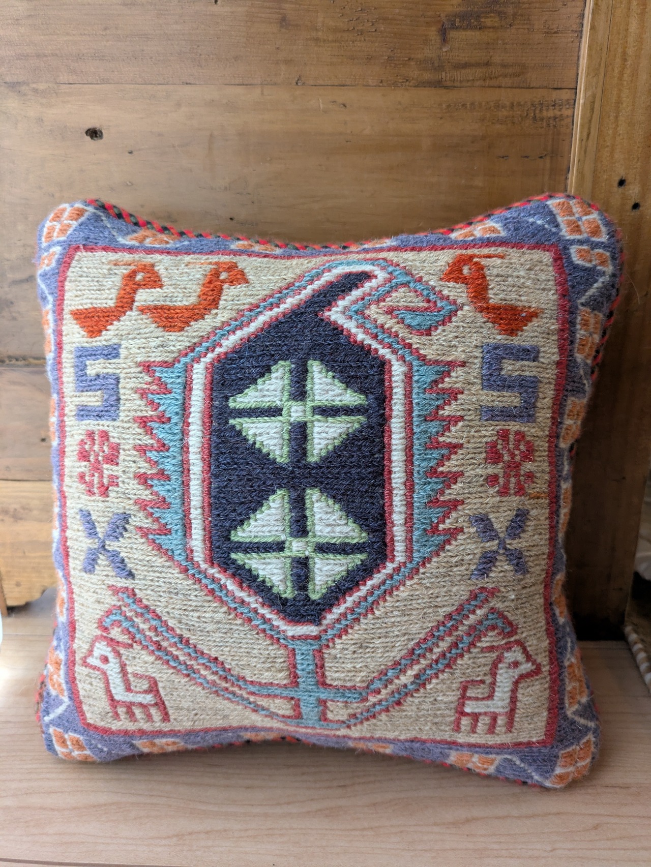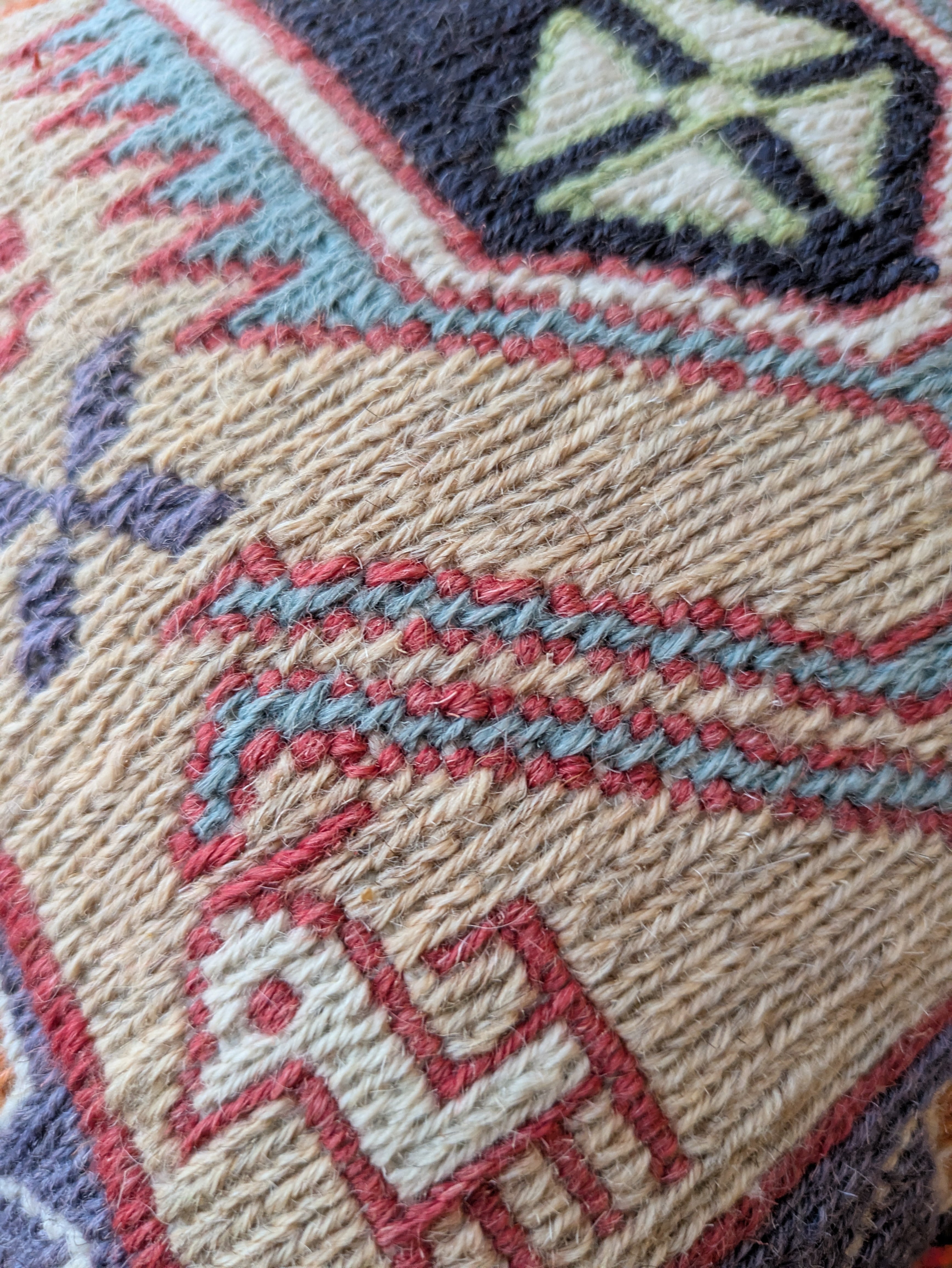 全体的に淡い色味で、特に淡いパープルが珍しいです。小さめサイズで背当てにぴったりです。