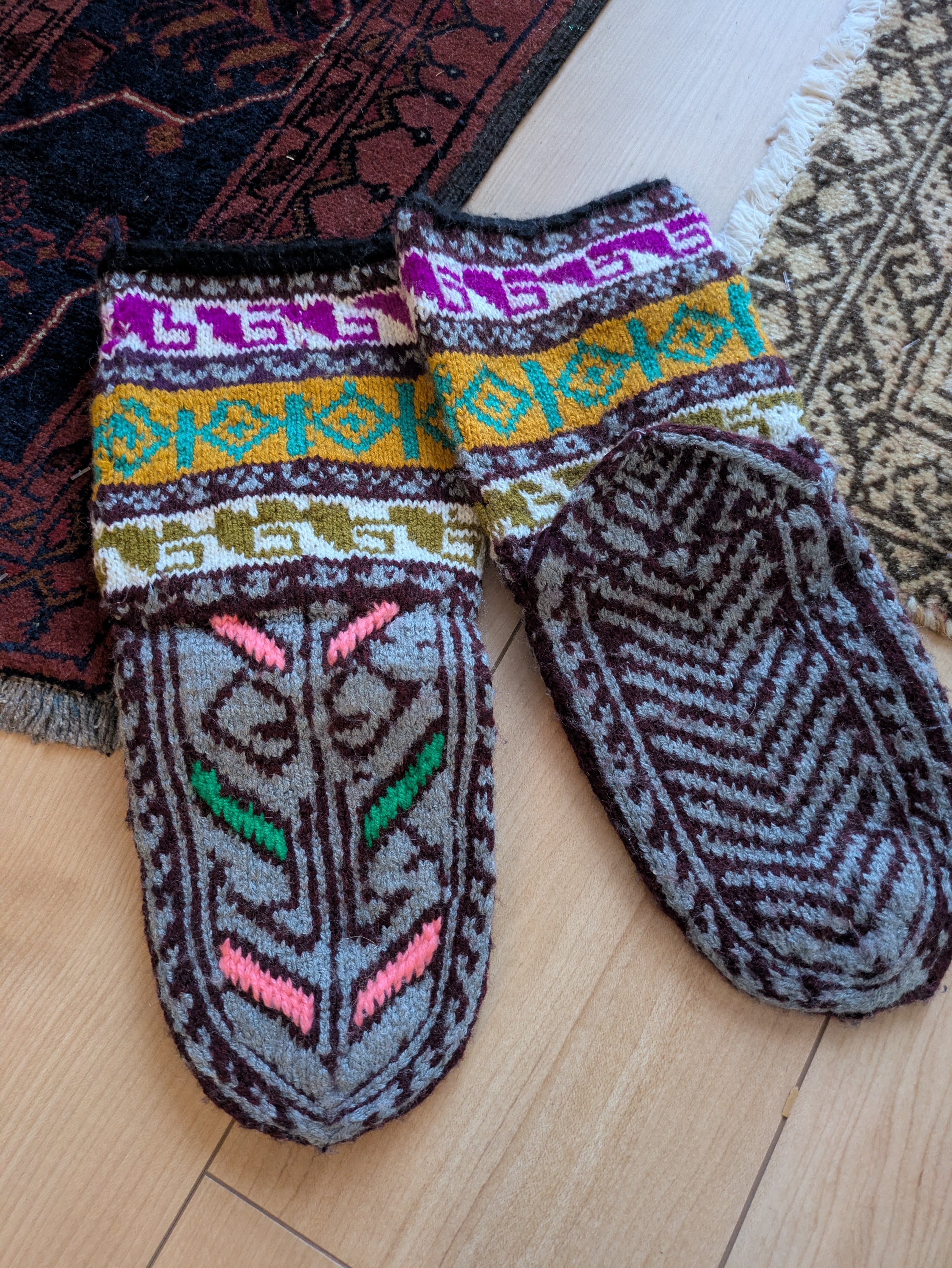 イランのおばあちゃんの手編み靴下は、温かさと心温まるストーリーが詰まった一足です。