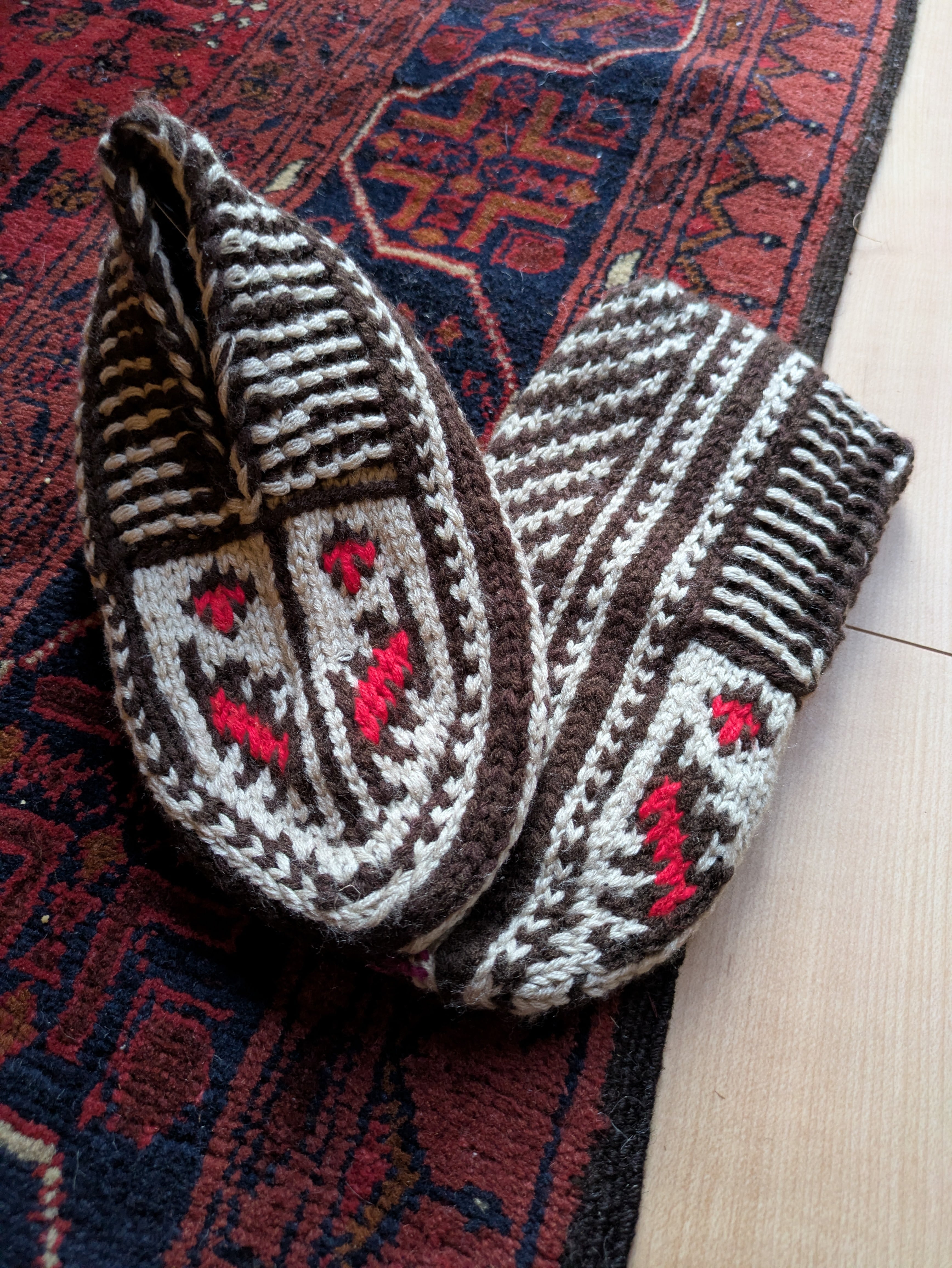 イランのおばあちゃんの手編み靴下は、温かさと心温まるストーリーが詰まった一足です。