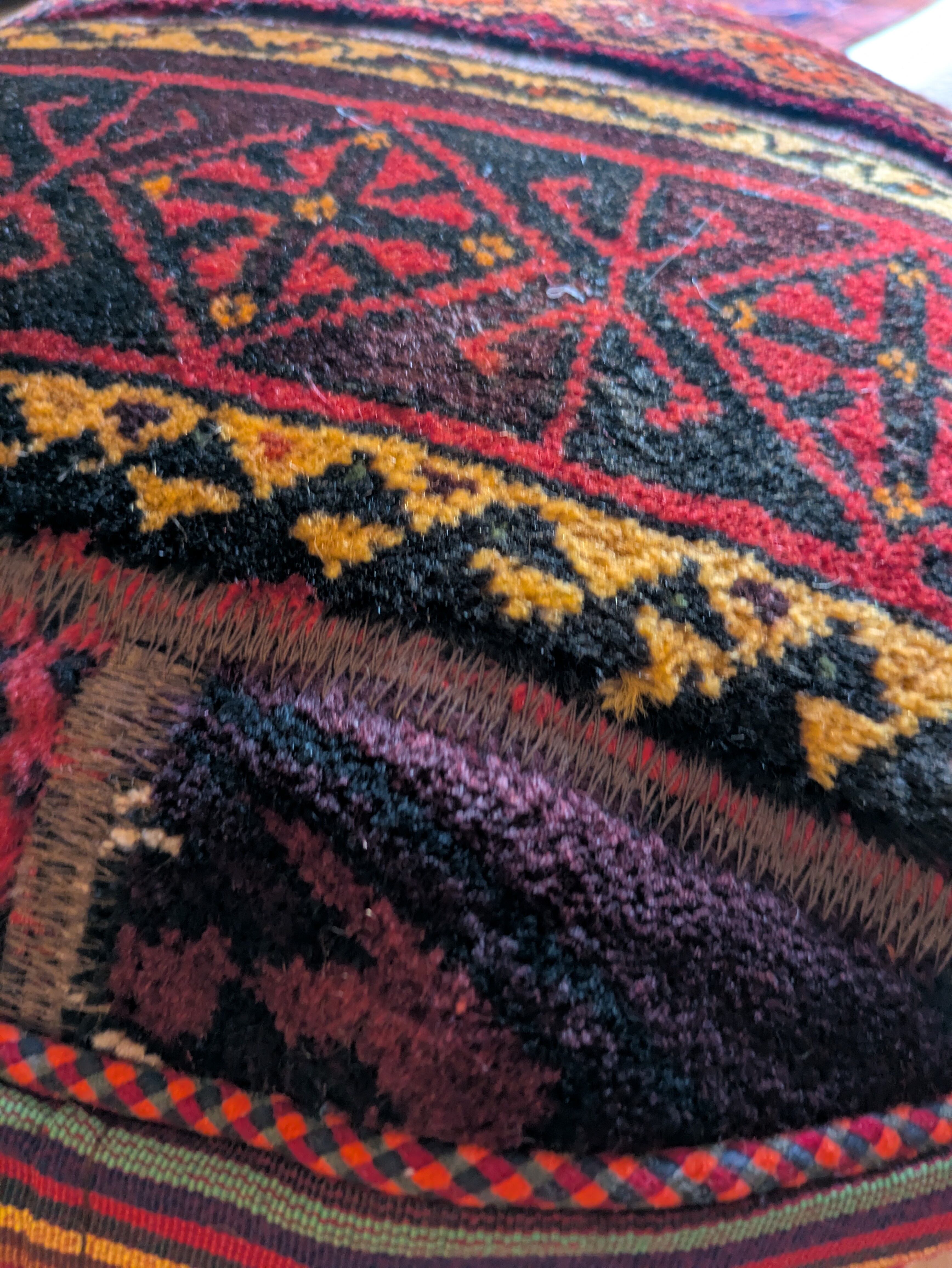 ヴィンテージトライバルラグのパッチワークなので、唯一無二の一点ものです。