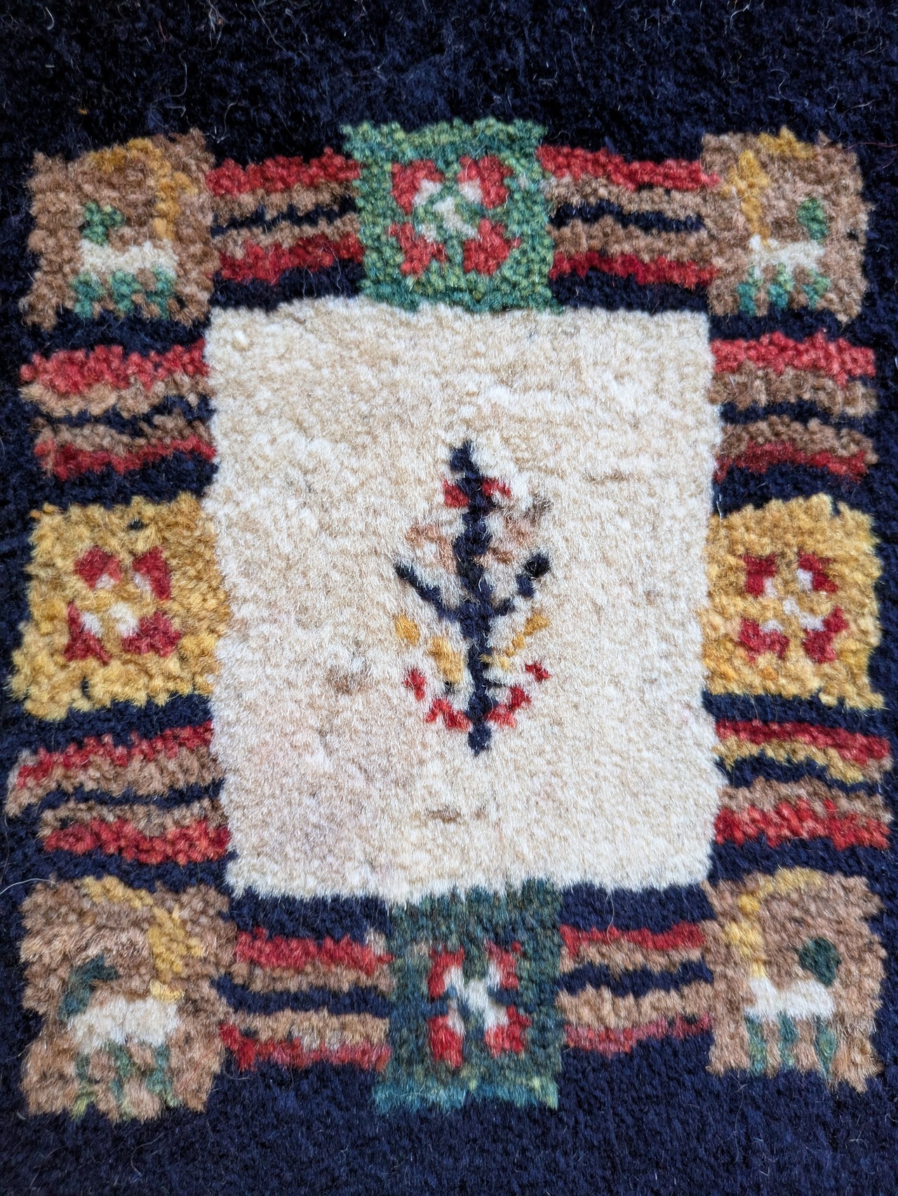 よく見ると小さい四角のなかに鹿や生命の木が織り込まれています。