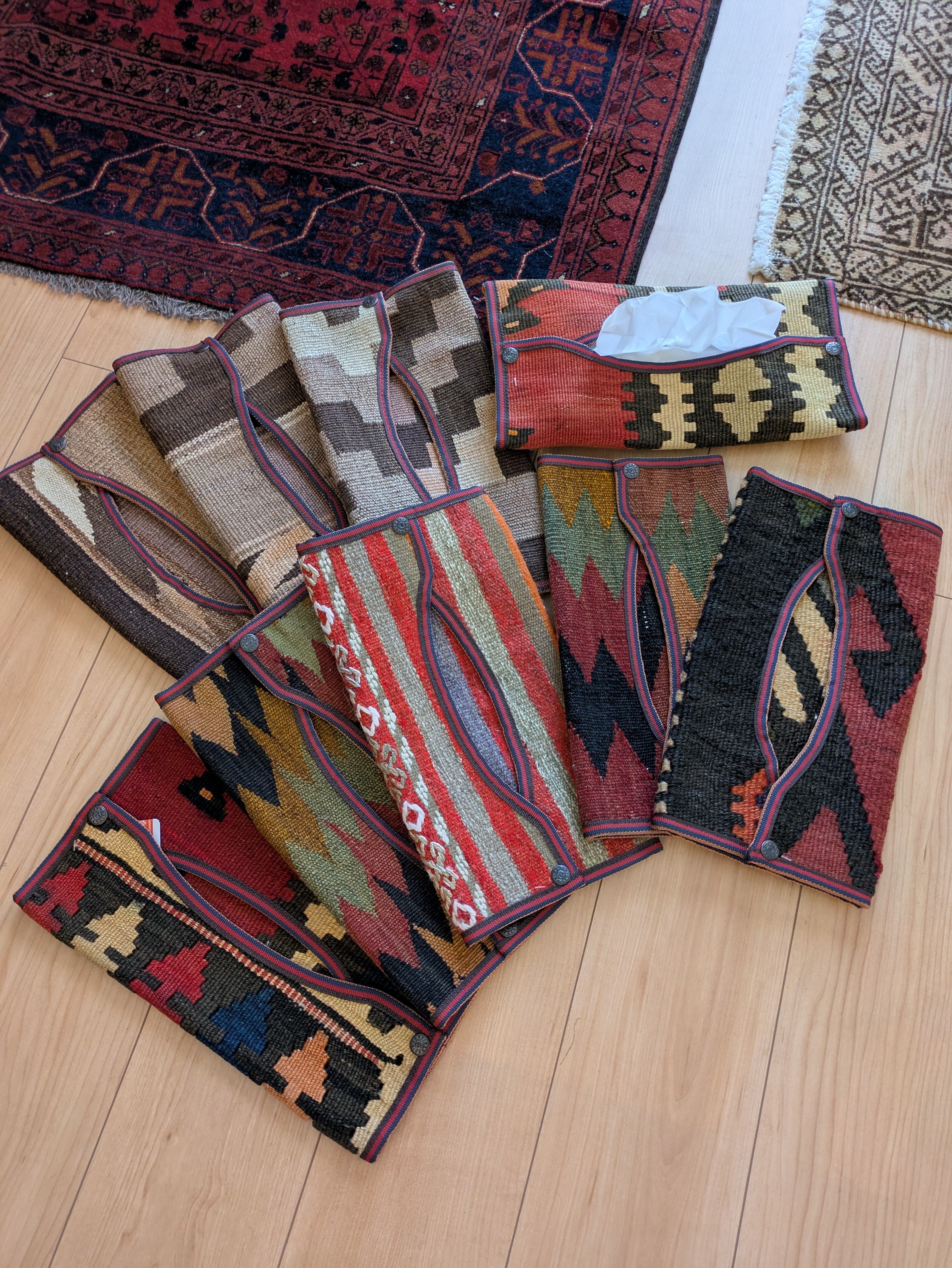 ヴィンテージのキリムを、一点一点アップサイクルさせて作り出されたティッシュカバーです。