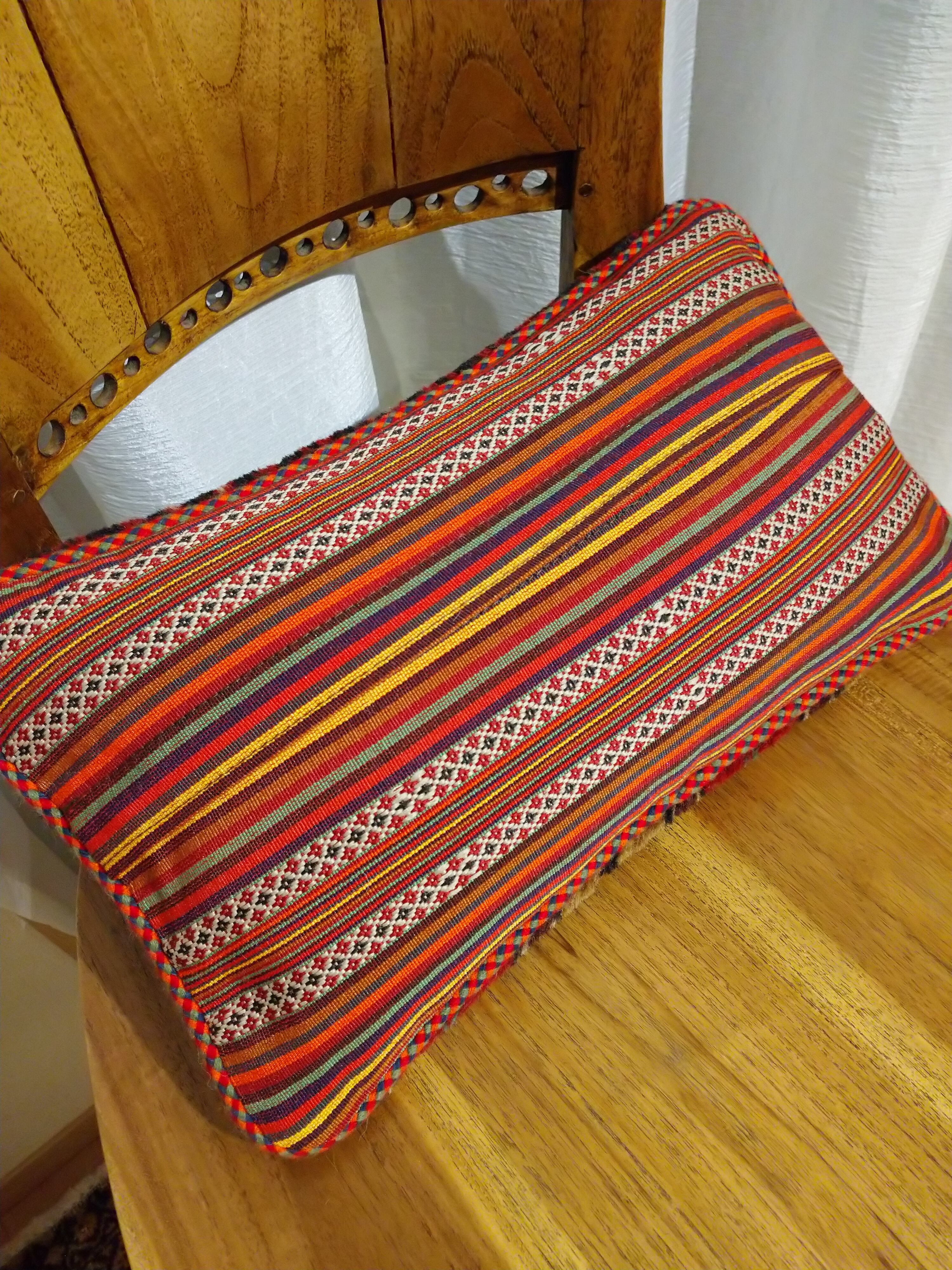 ヴィンテージのトライバルラグをリメイクして作られたクッションカバーです。全く同じものは見つけられない一点ものです。