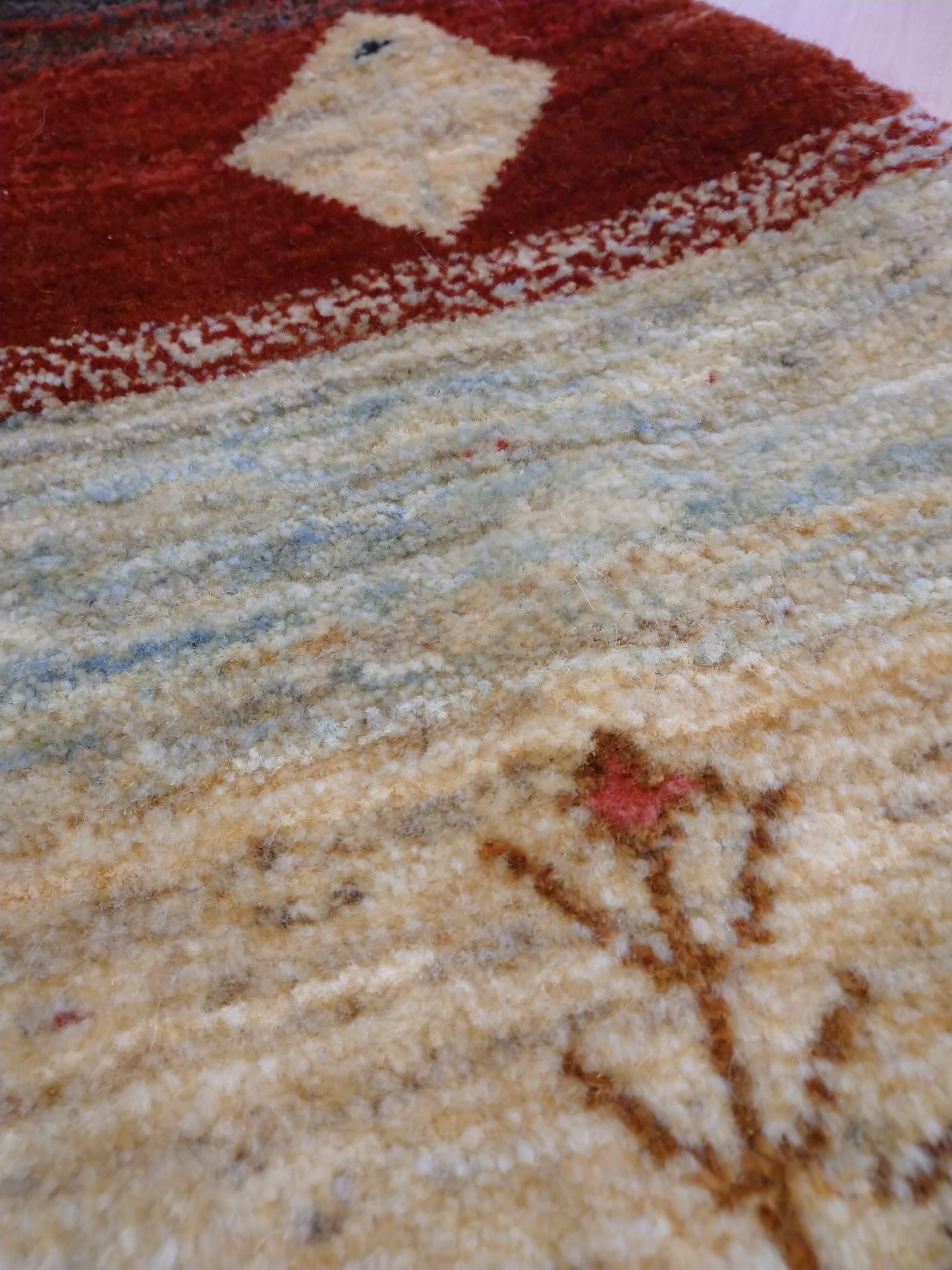 このミニギャッベを選ぶことで、贅沢なひとときを過ごせるでしょう。ソファの脇に敷いて、足元から癒やしの時間を。また、壁に貼って飾って、お部屋のアクセントに。目にも楽しく、心地よさを感じていただけます。