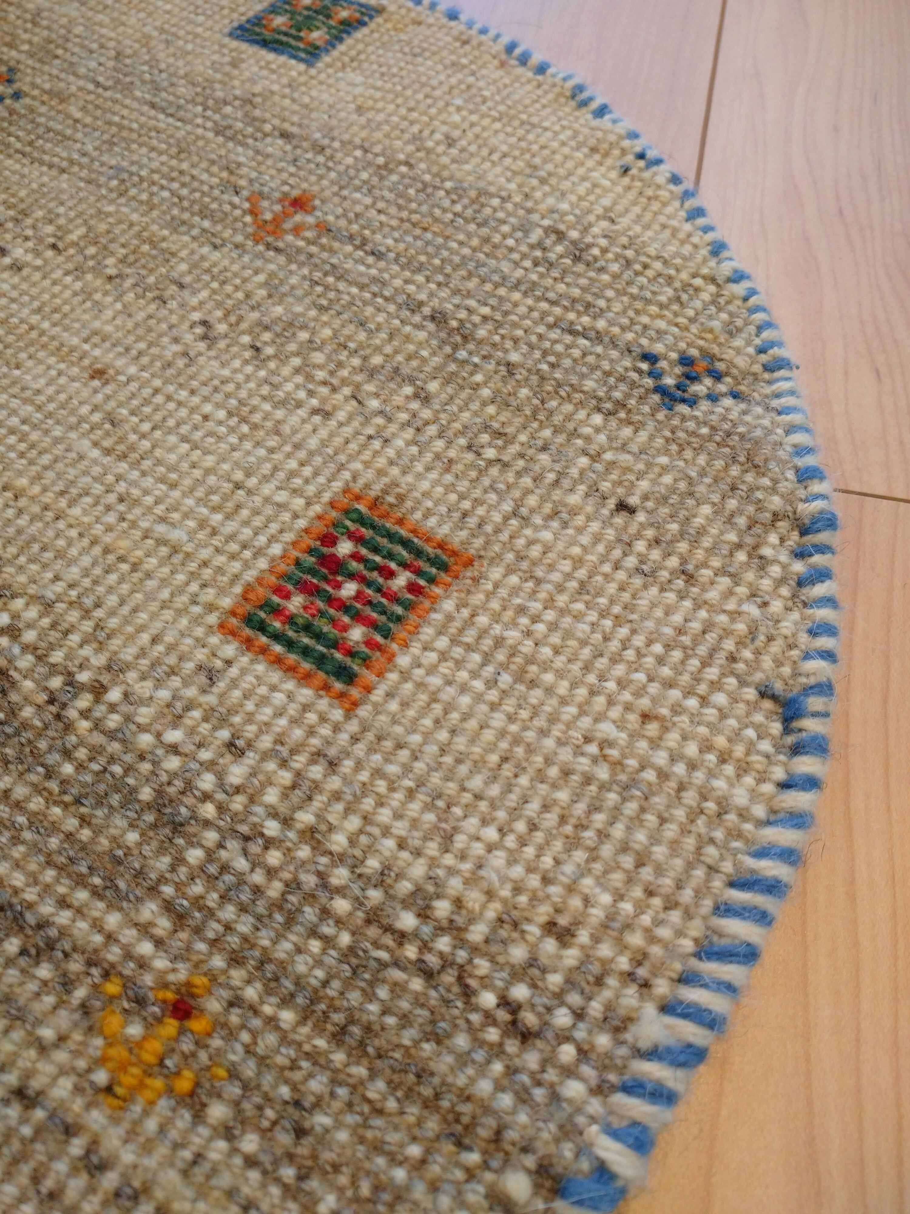 手で触れるとわかる柔らかな風合いは、特殊な織り方のおかげ。丁寧に織り上げられたミニギャッベは、しっかりとした厚みがありながら柔らかさを兼ね備えています。床に敷いて座ったり、壁に飾ったり、インテリアとしてさまざまな使い方ができます。