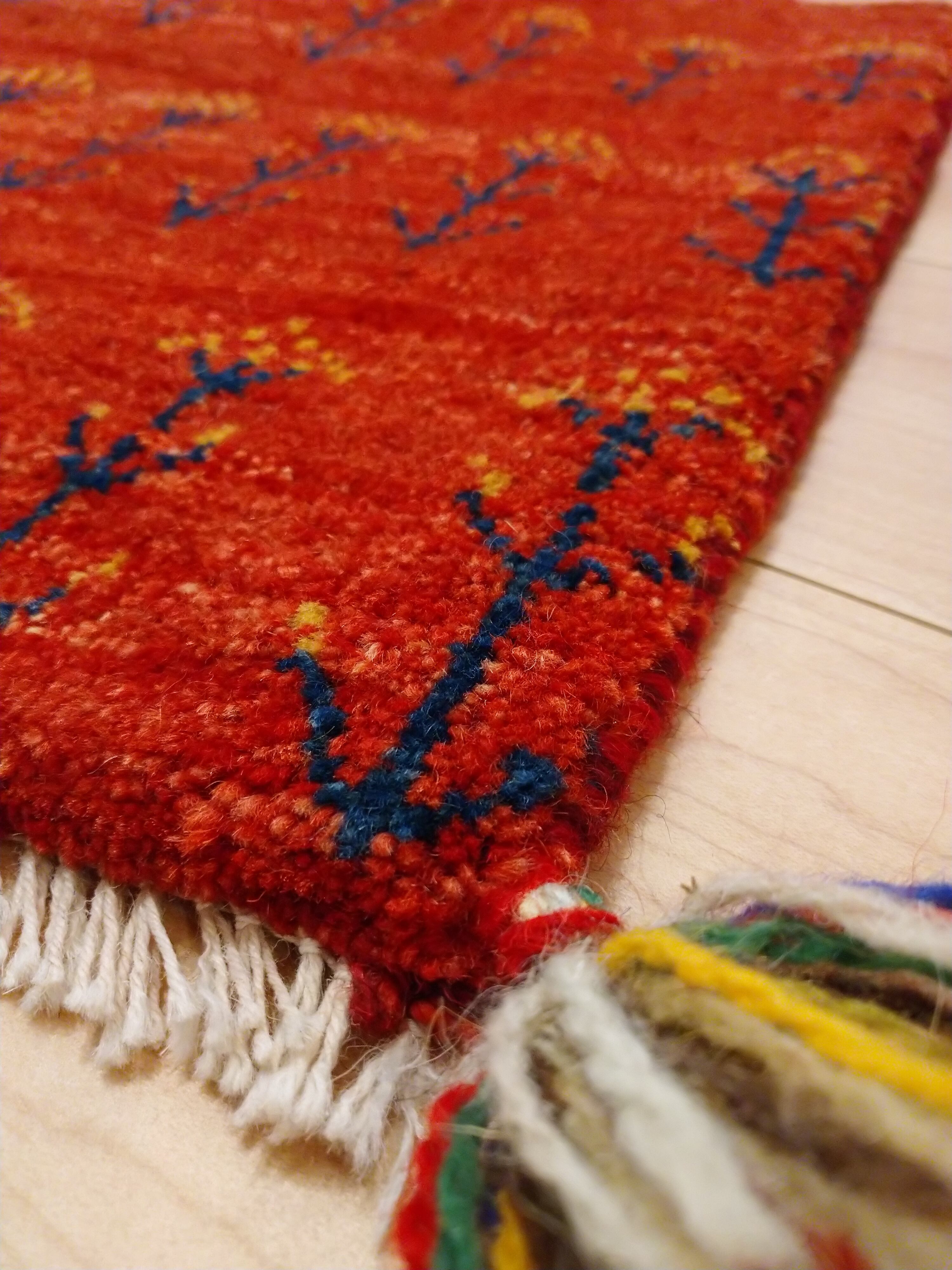 このギャッベは、手織りの技術を受け継ぐ職人たちが、丹精込めて作り上げました。そのため、ひとつひとつに個性があり、他のどんなギャッベとも違う魅力があります。