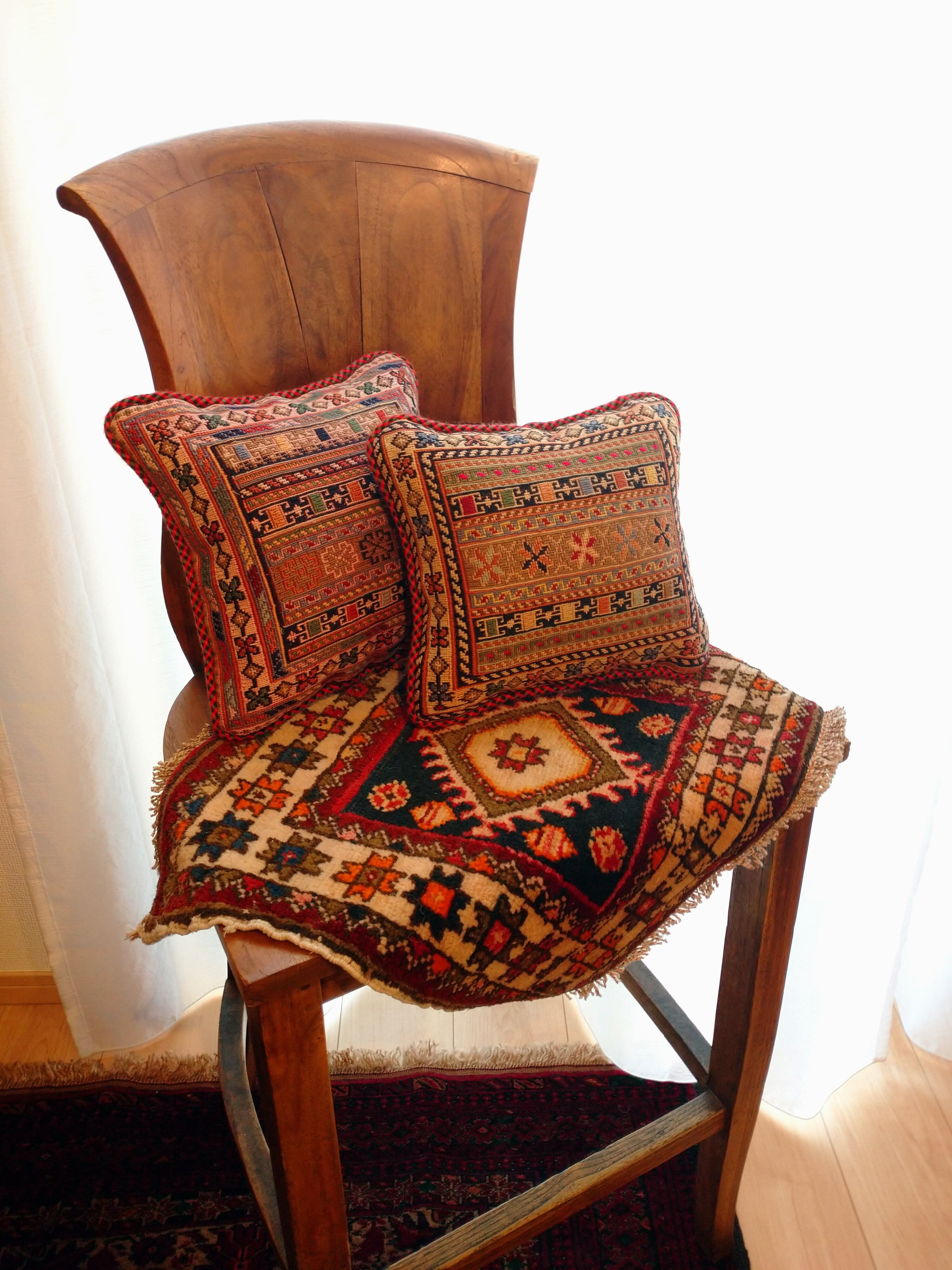 このクッションの魅力は、ただのインテリアではなく、その世界観やストーリーにあります。キリムは伝統的な織物で、絶妙な色使いと繊細な模様が特徴です。クッションを手に取るたびに、遠い地の風景や文化を感じることができるでしょう。
