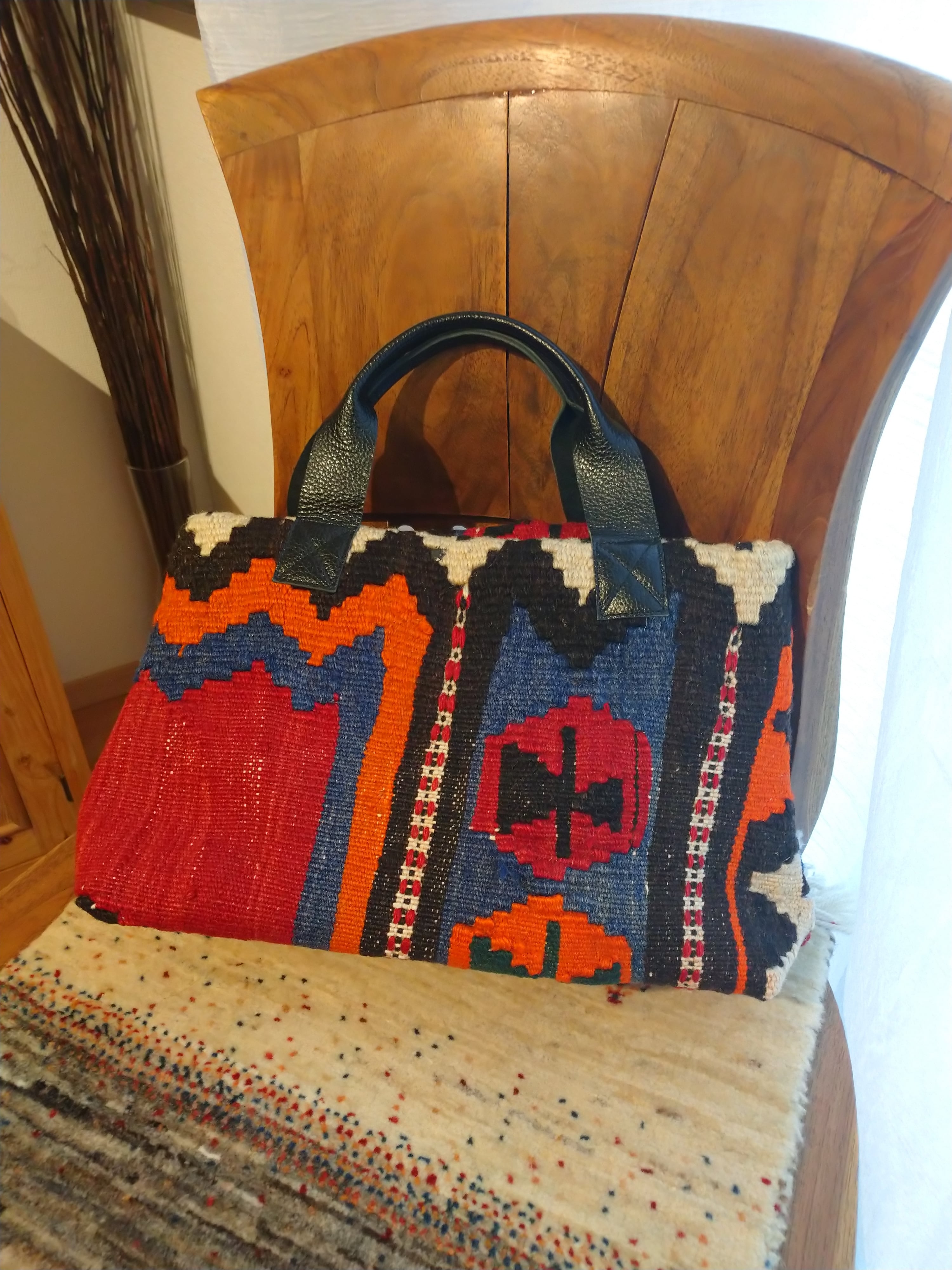 オールドキリムをリメイクして作ったバッグです。柄の出方が唯一無二の1点ものです!