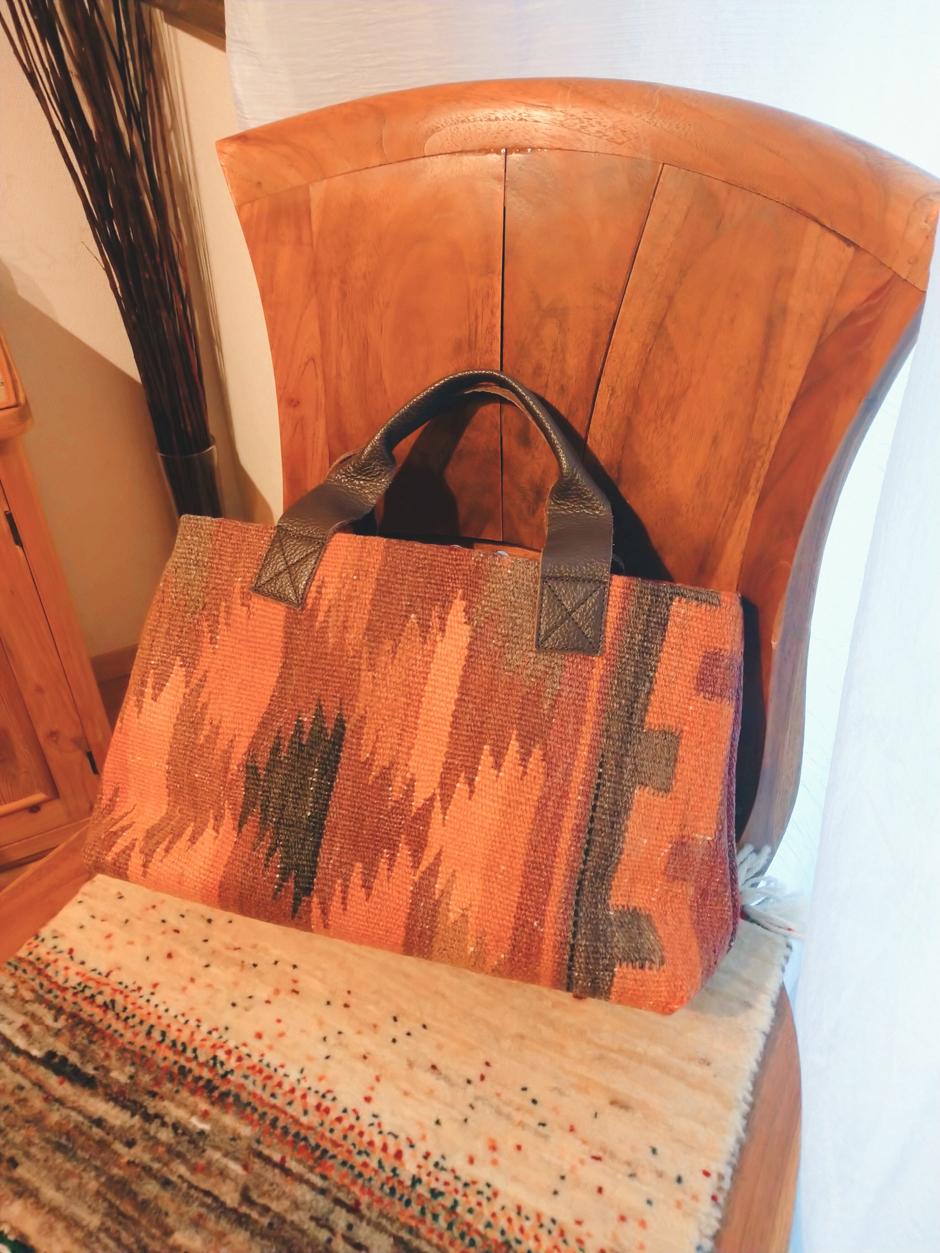 オールドキリムをリメイクして作ったバッグです。柄の出方が唯一無二の1点ものです!