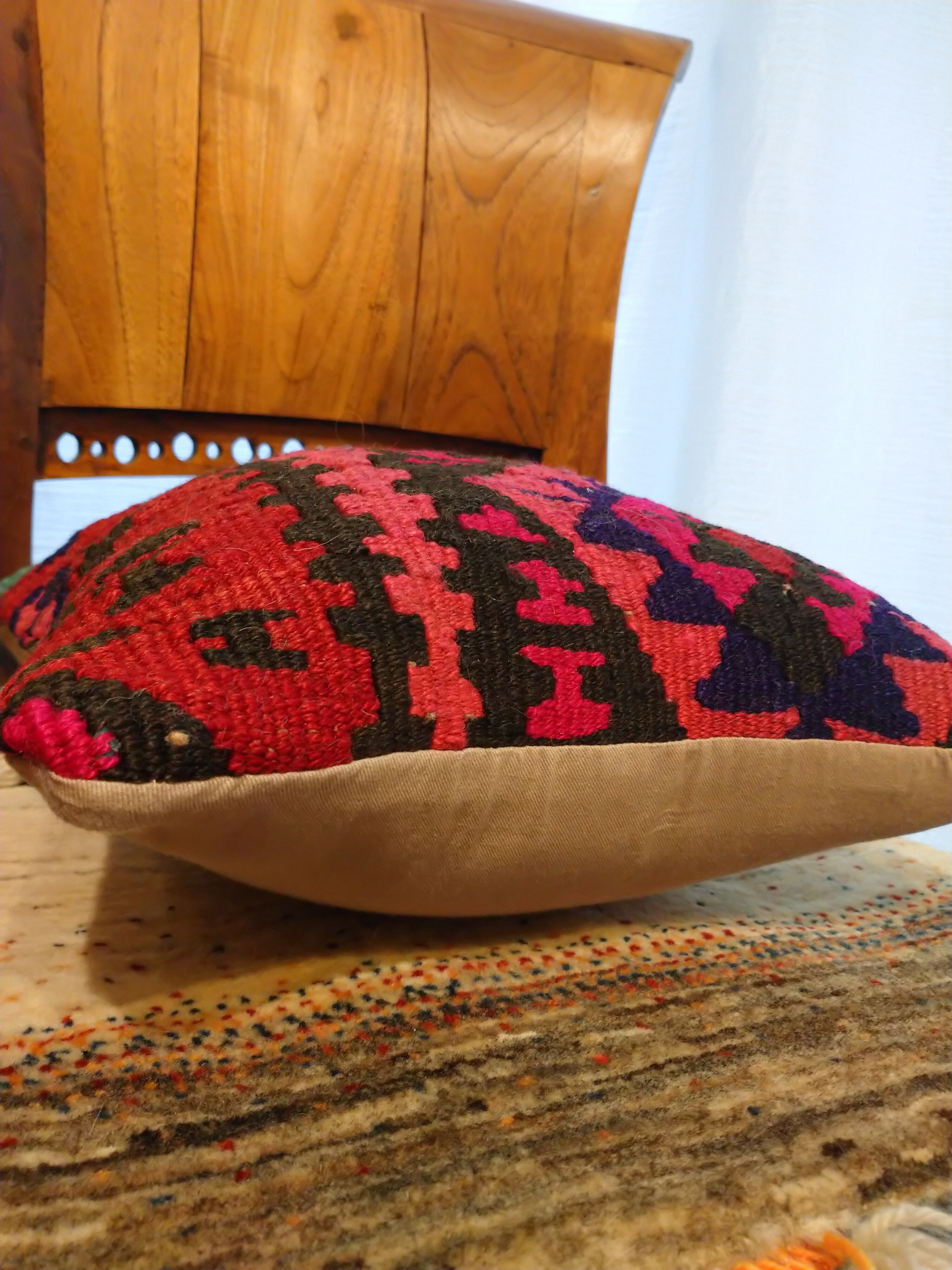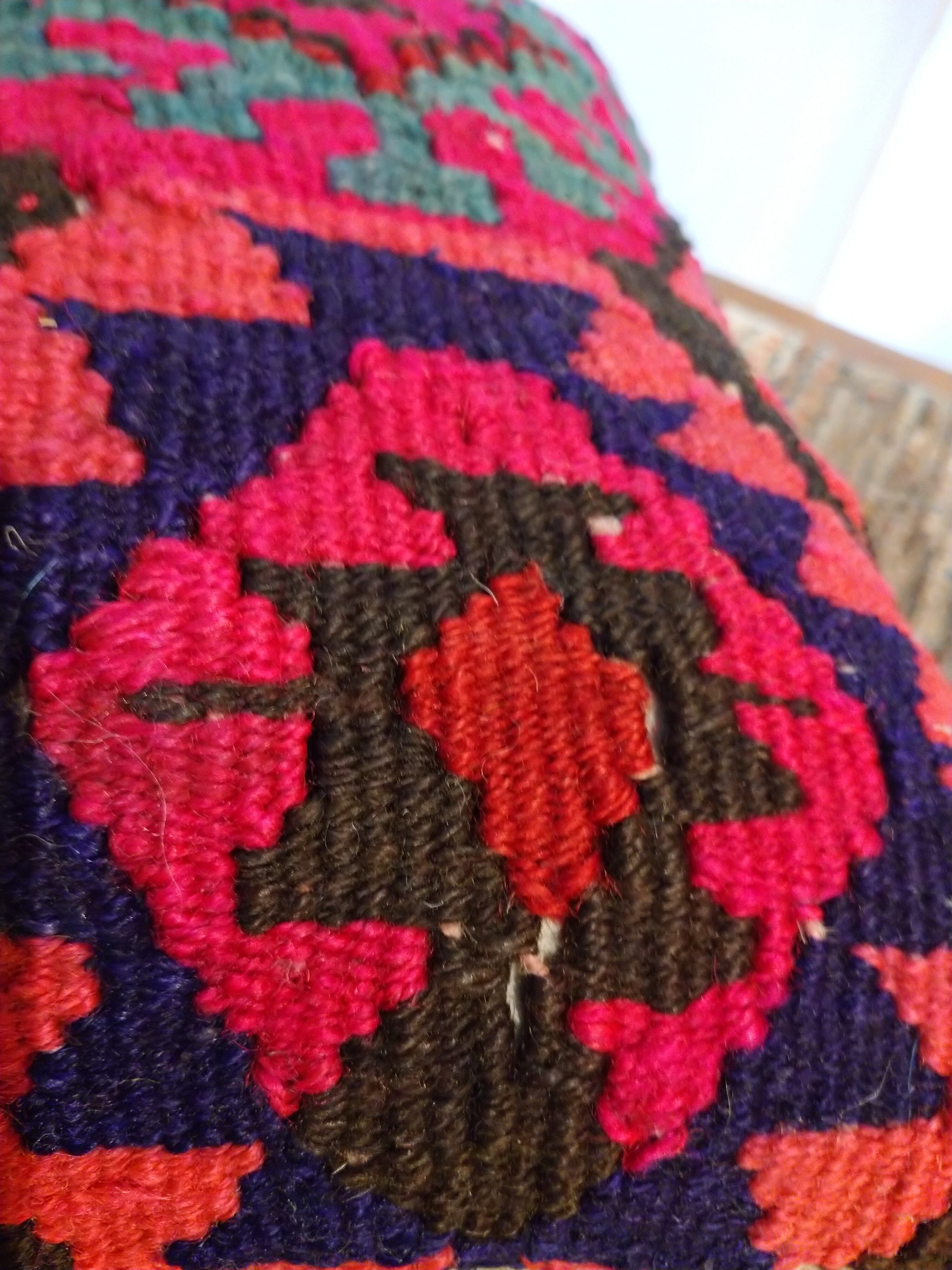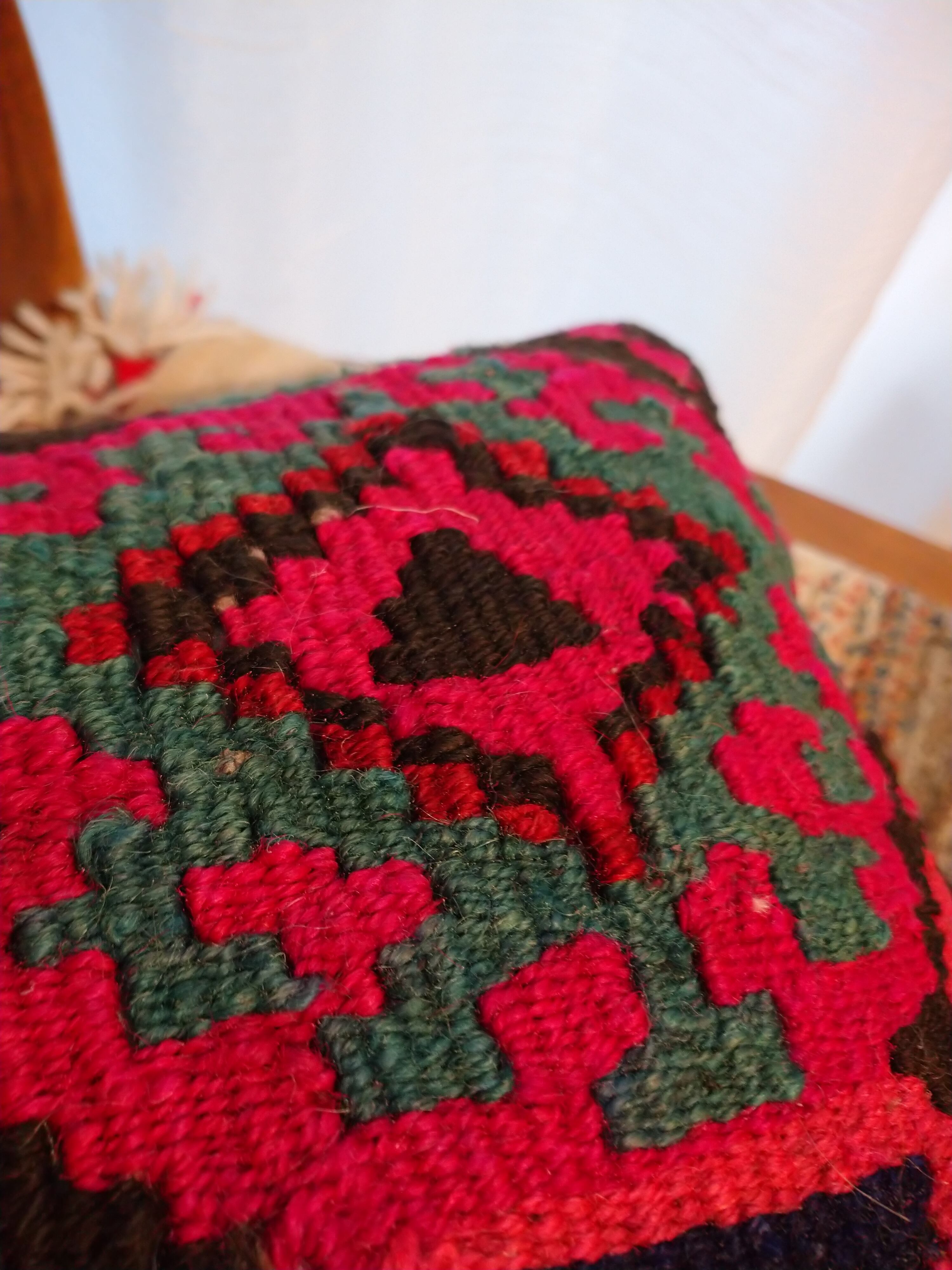 小ぶりの背当てにちょうどいいサイズのクッションです。オールドキリムの鮮やかな色がインテリアのアクセントになること間違いなしです。こちらはカバーのみになりますので、30×30cmのヌードクッション(中材)をお求めください。