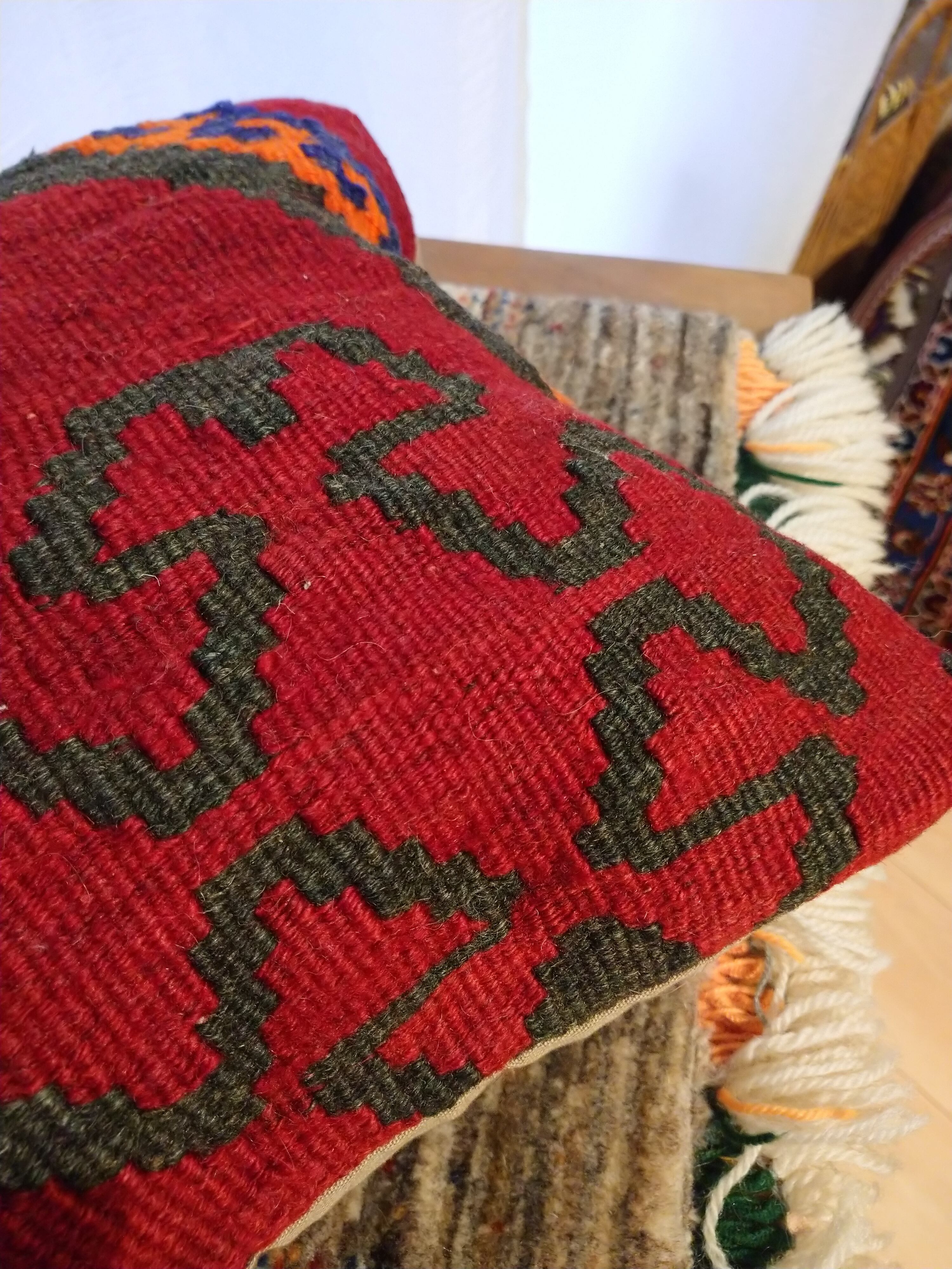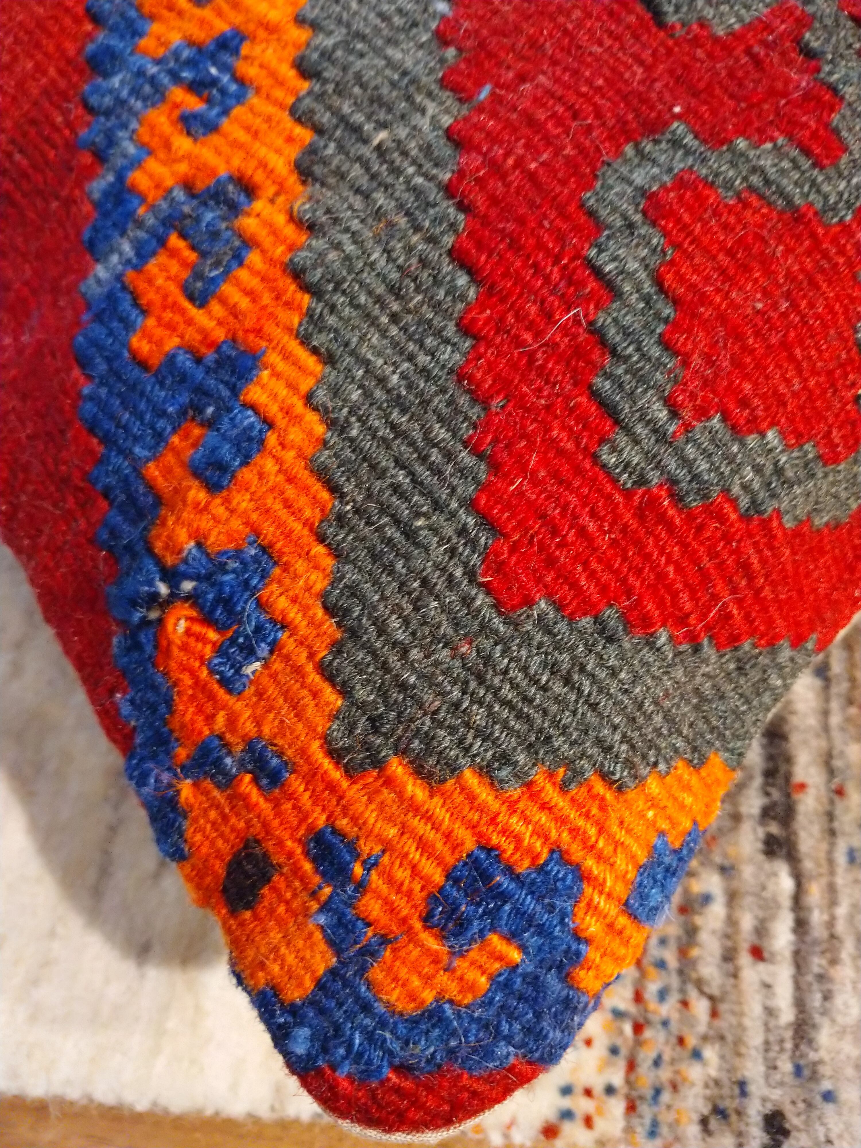 小ぶりの背当てにちょうどいいサイズのクッションです。オールドキリムの鮮やかな色がインテリアのアクセントになること間違いなしです。こちらはカバーのみになりますので、30×30cmのヌードクッション(中材)をお求めください。