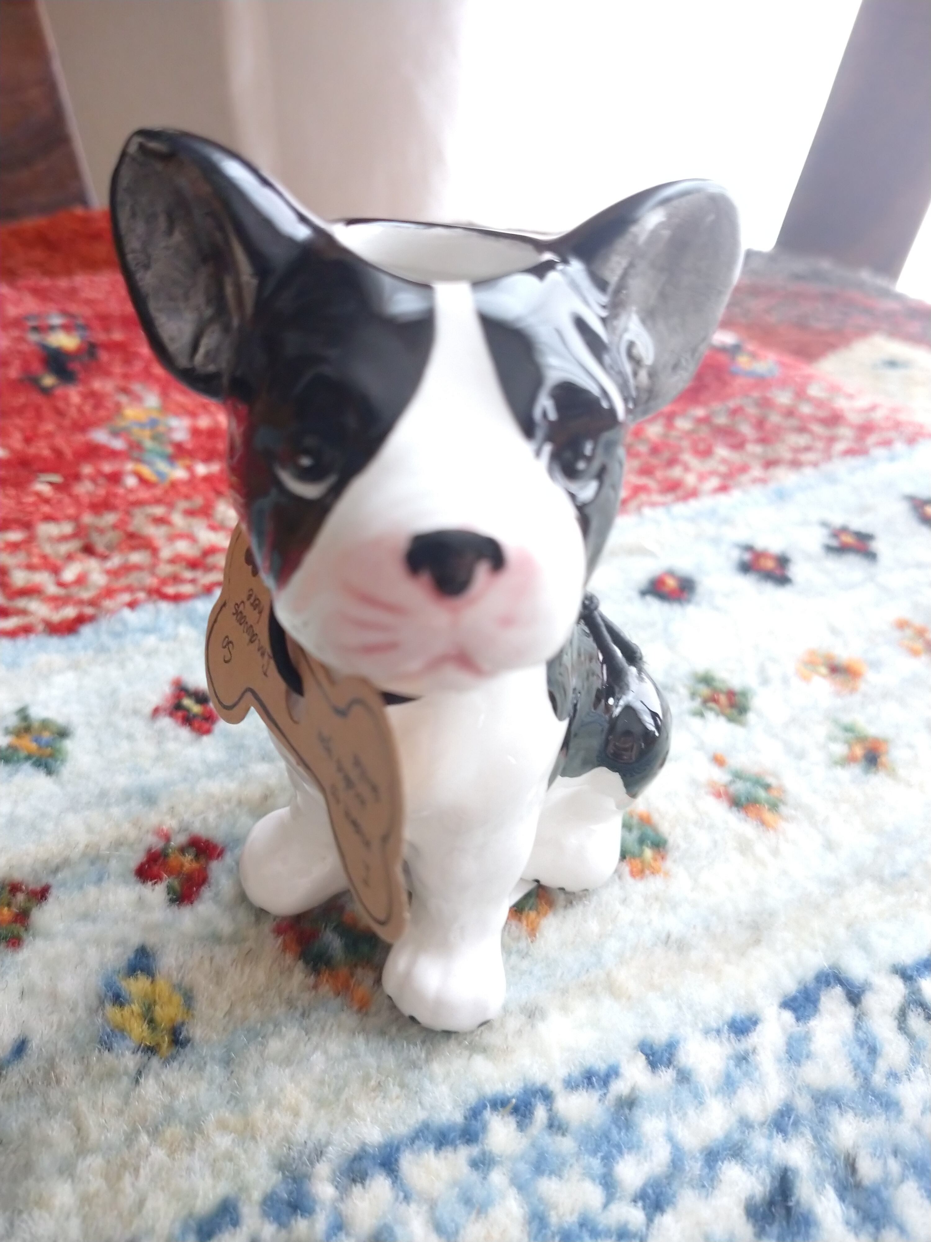 とてもかわいい 陶器でできたフレンチブルドッグのフラワーベースです。