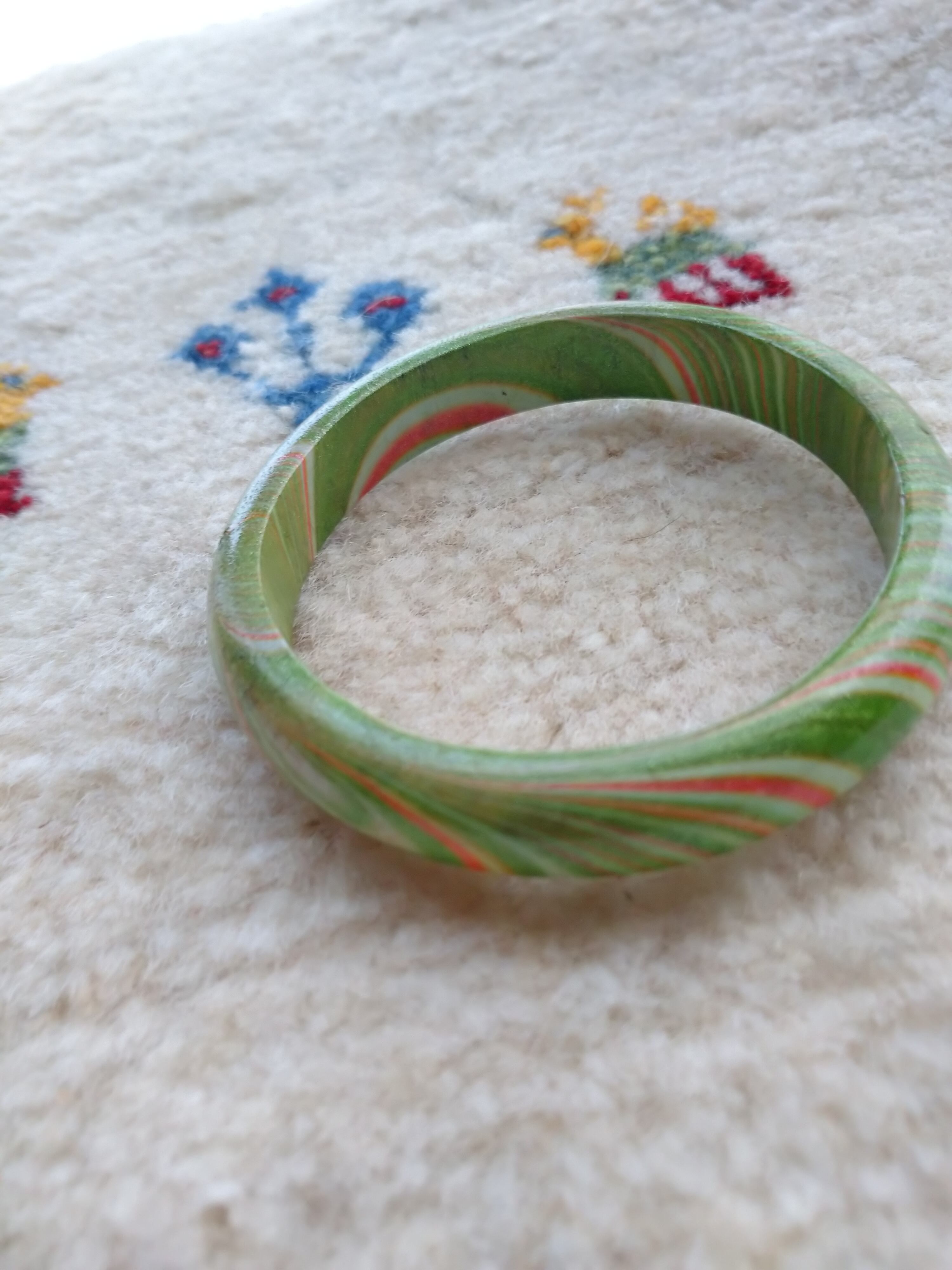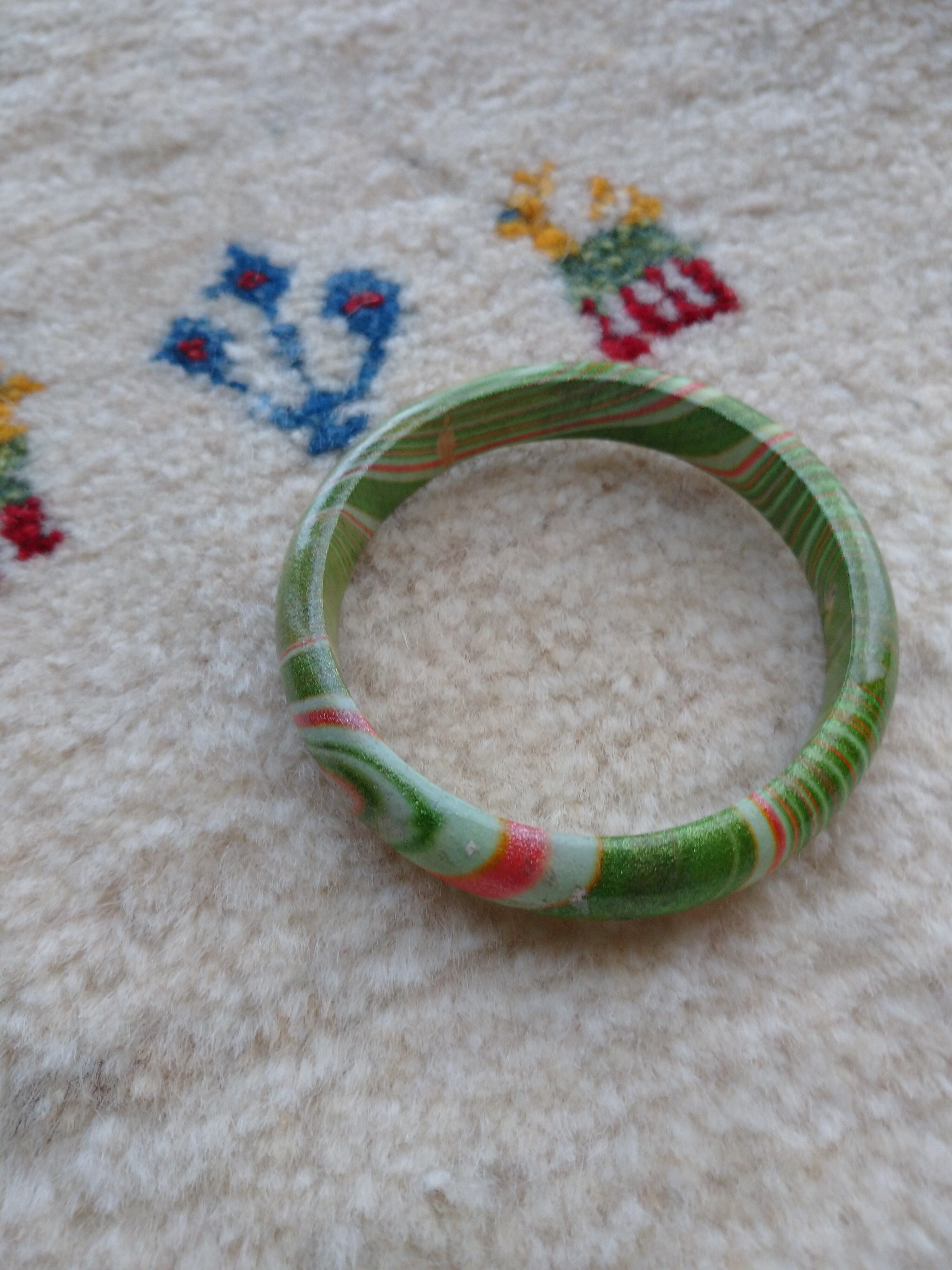 グリーンとオレンジのマーブルが可愛らしいバングルです。