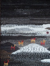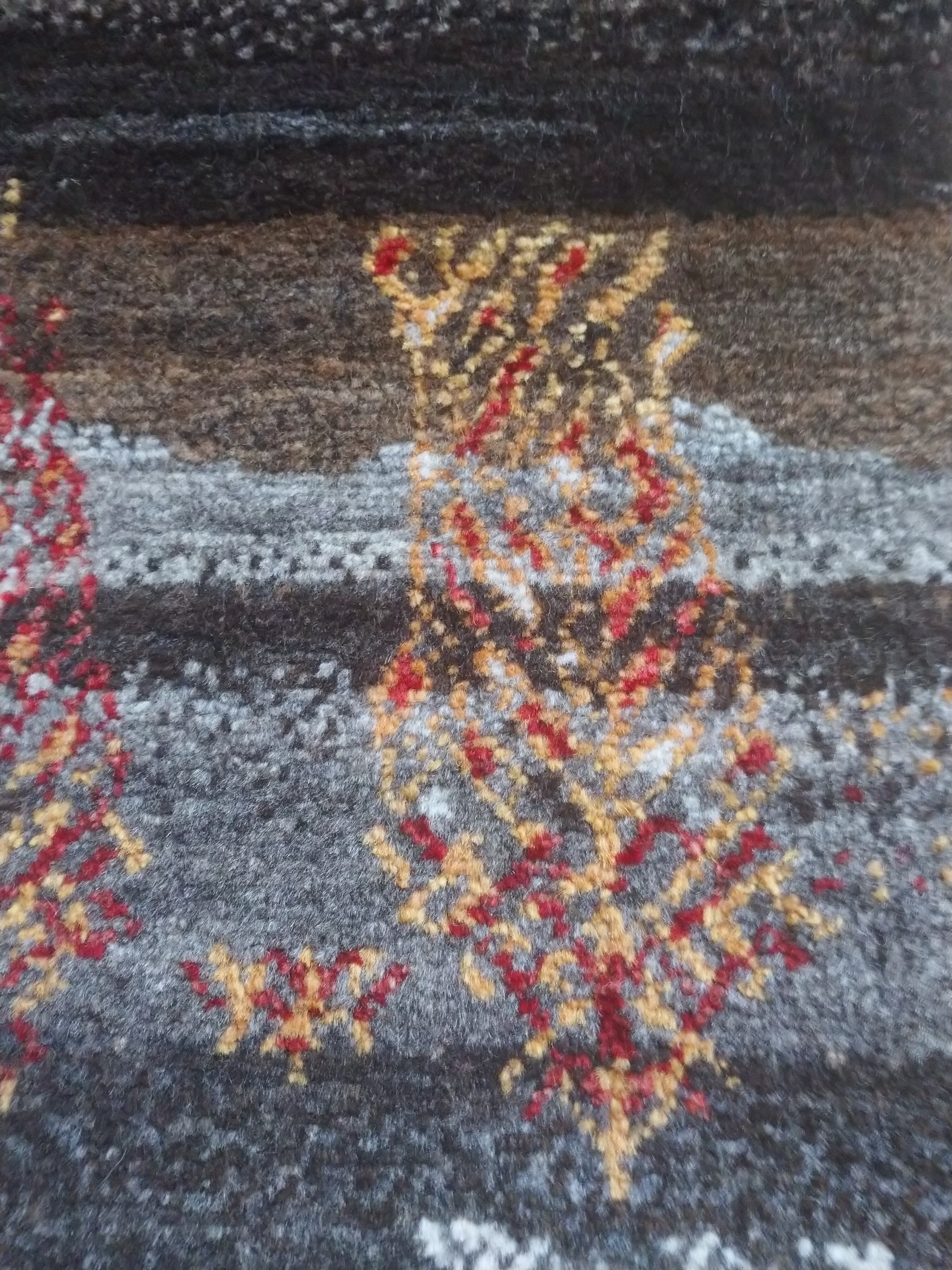 ランドスケープ柄ですが、こんなにかっこいい色柄はなかなかないと思います。ダークブラウン×暖色系で大地の力強さを感じます。風景画のように壁に飾るのもおすすめです。