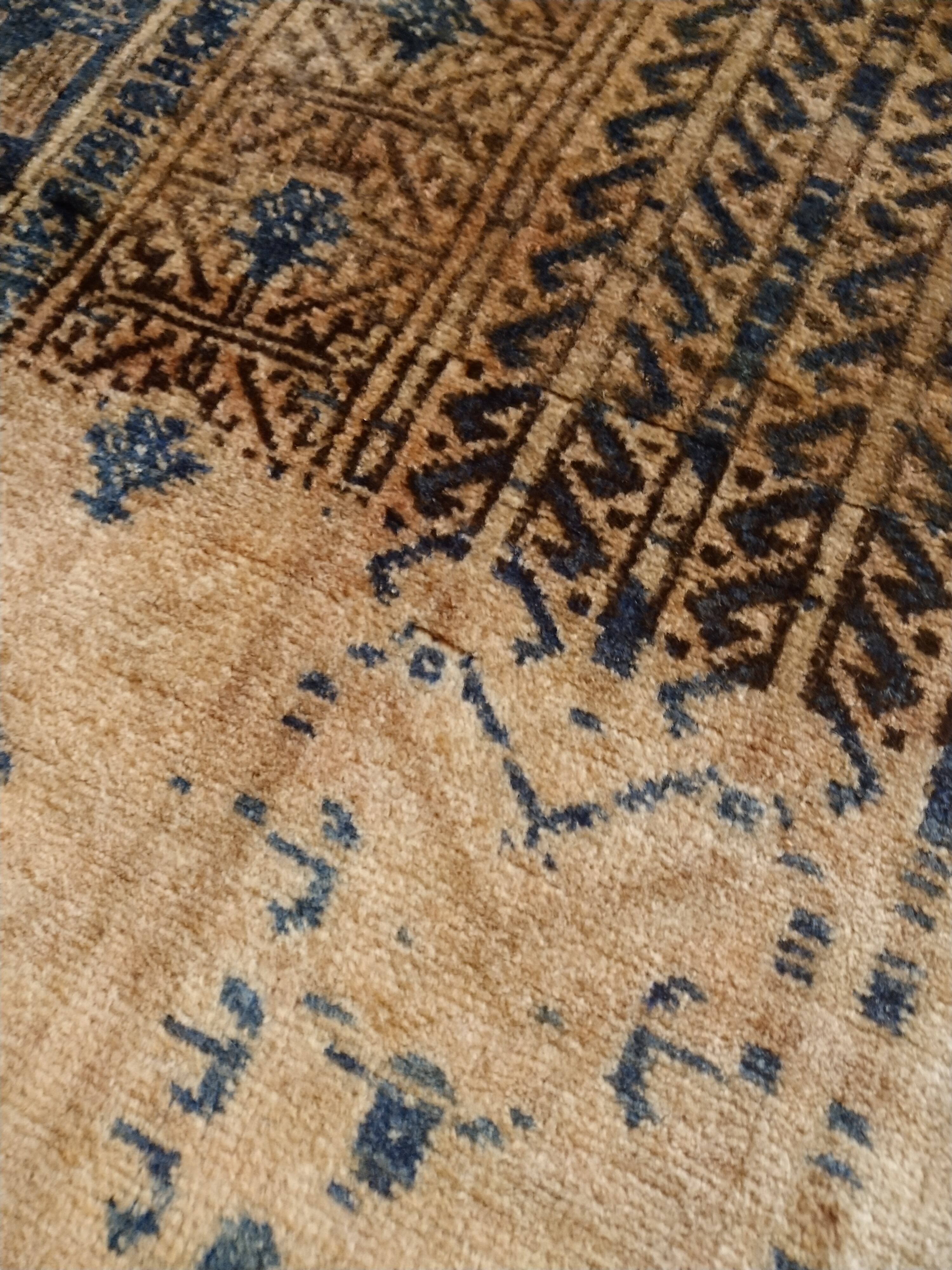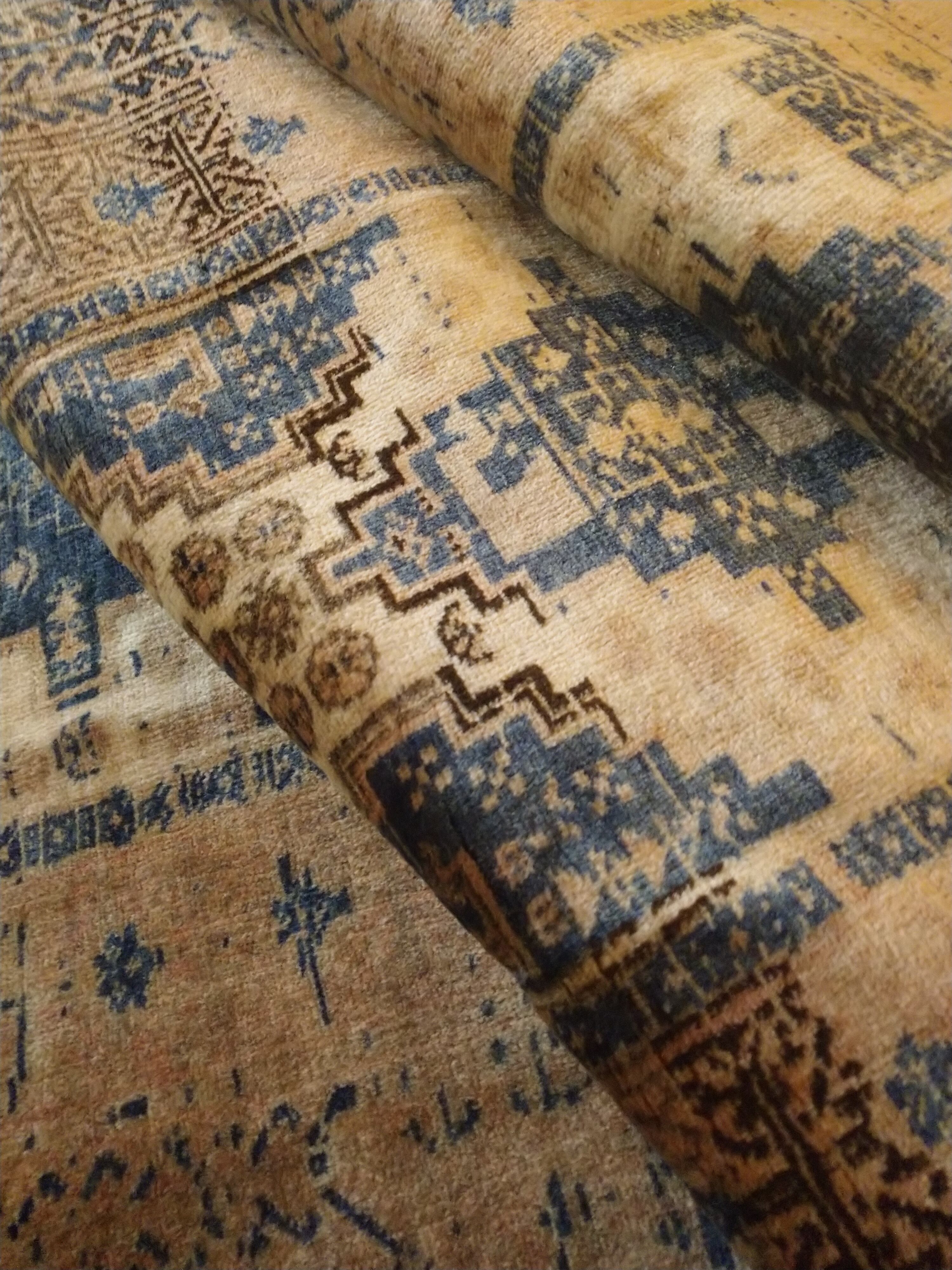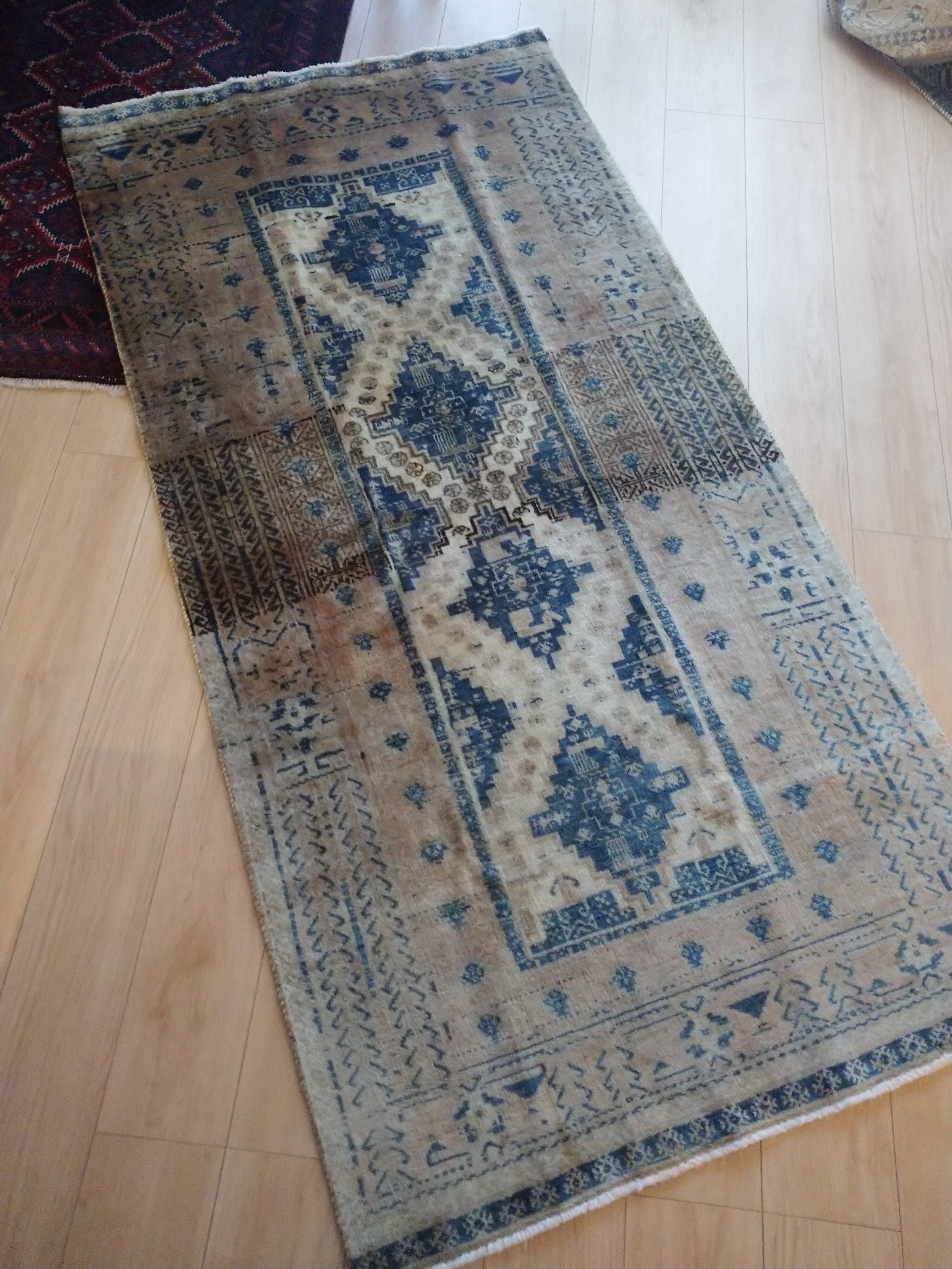 色を抜いているのに、つやつやです。よく見ると以前赤かったところがうすーくピンクに残っていたり、色柄のムラが経年の美しさとなっていると思います。