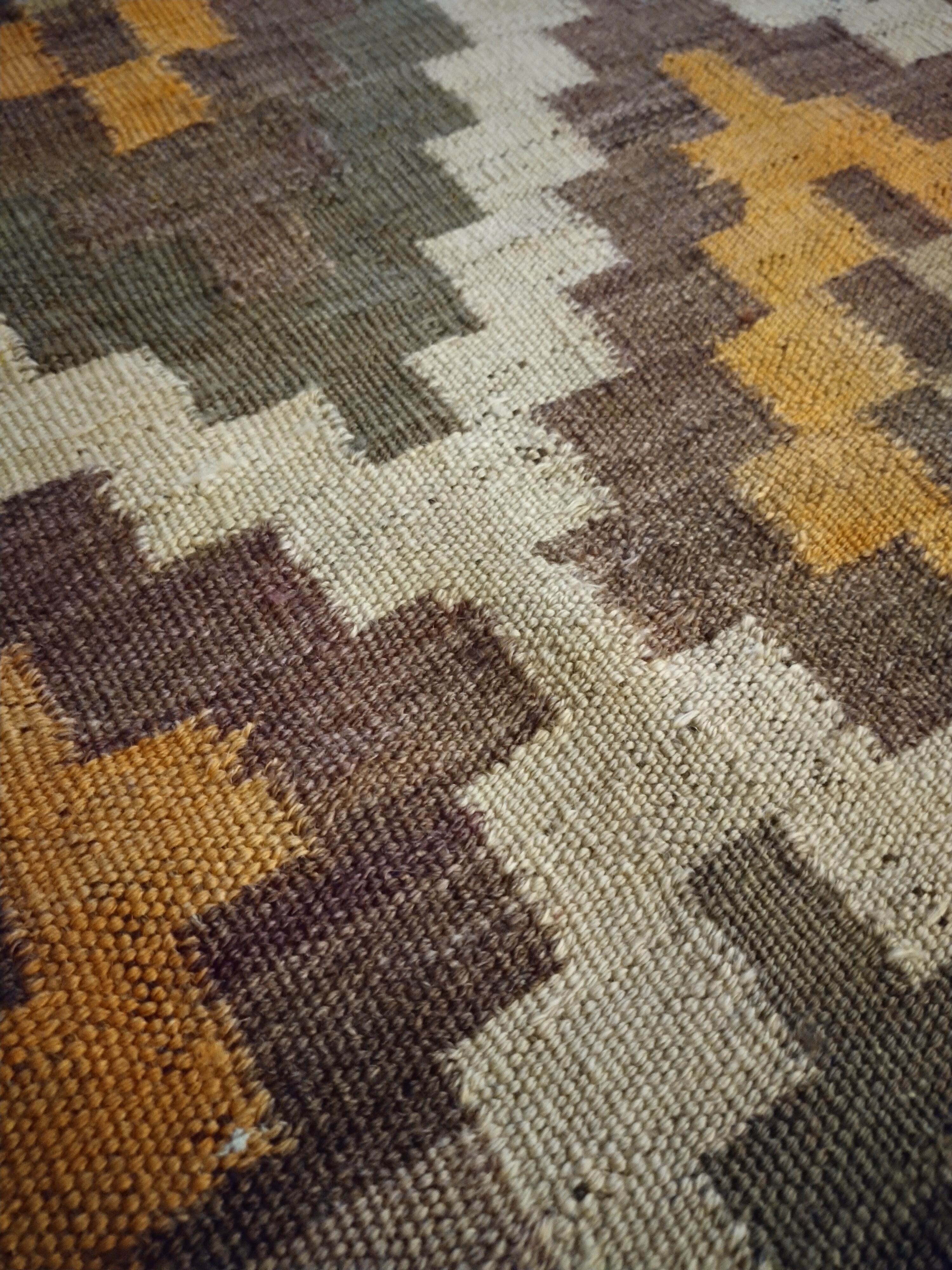 ソフトなオレンジ~ブラウンの組合せで インテリアに馴染むこと間違いない1枚。