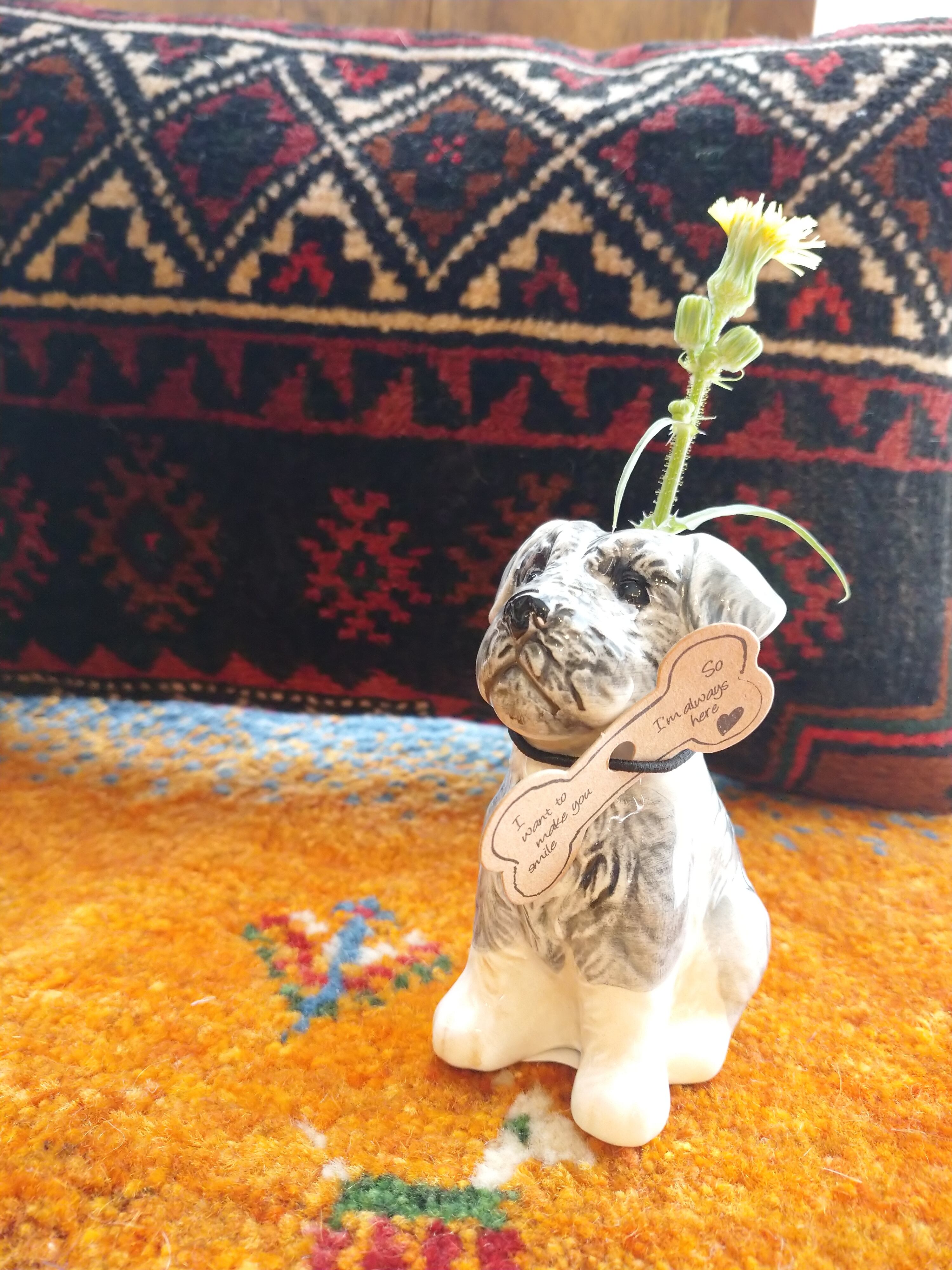 とてもかわいい 陶器でできたシュナウザーのフラワーベースです。
