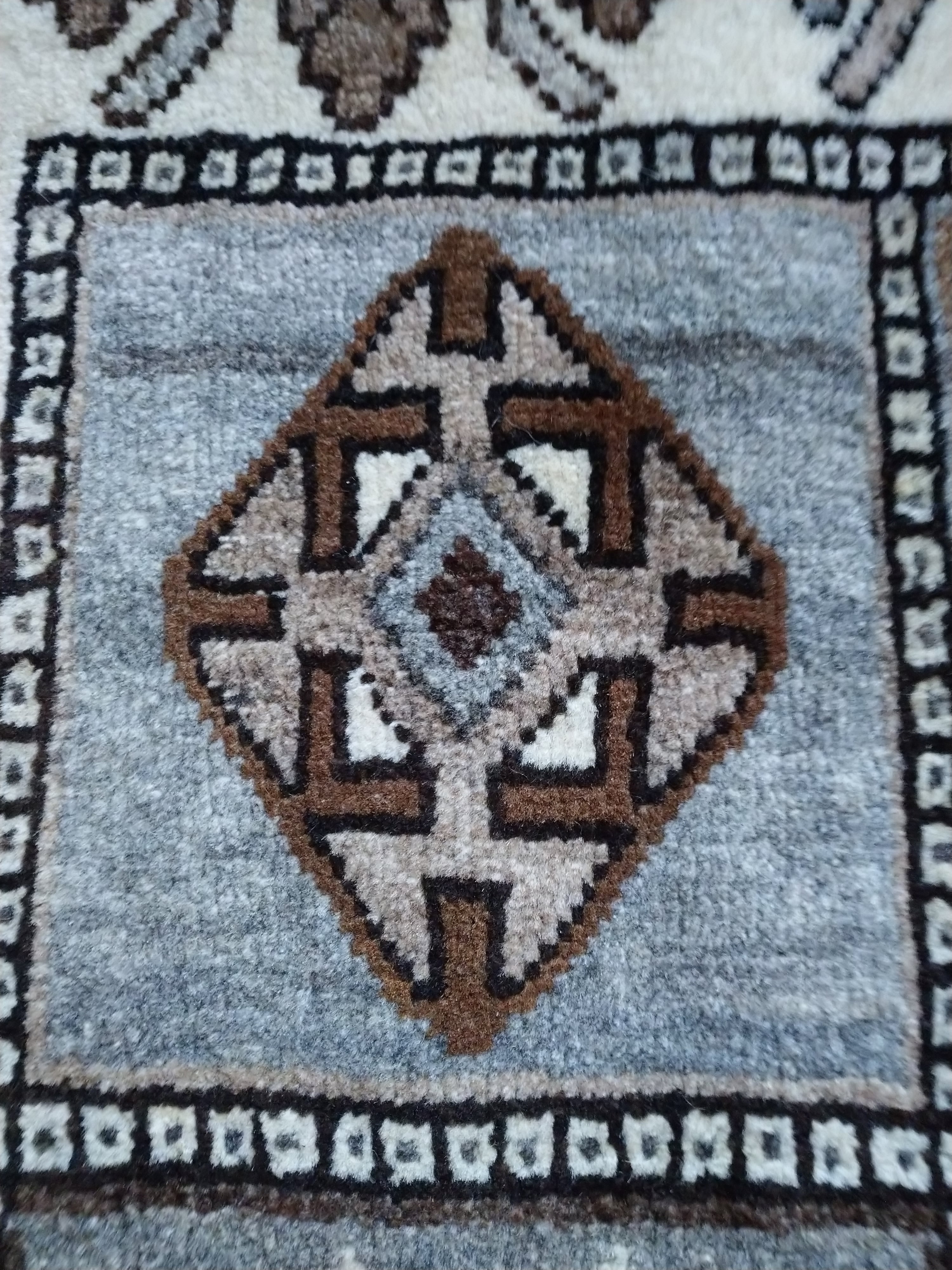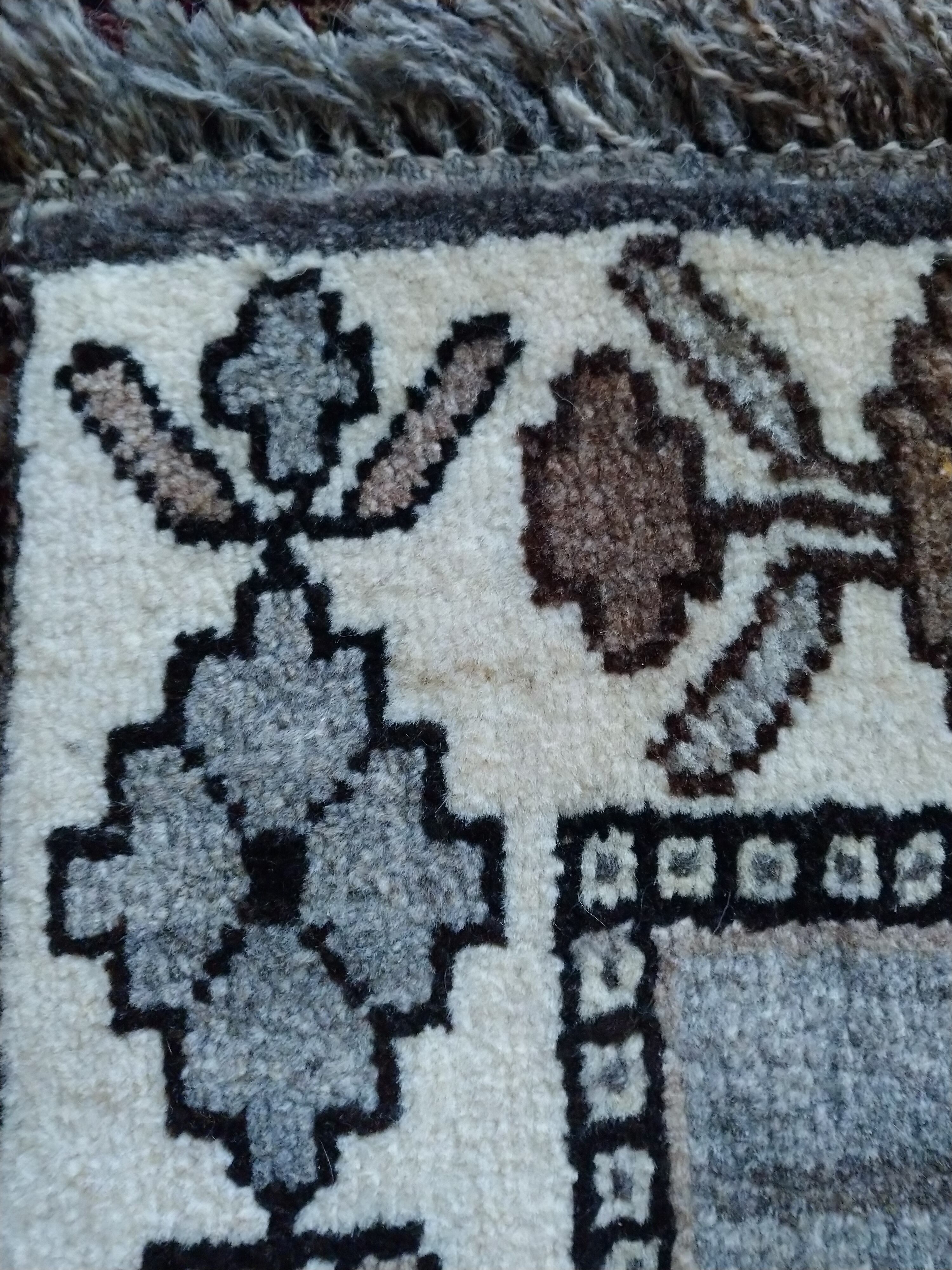 柄ははっきり大きめに入っていますが染めていない原毛のみのナチュラルカラーがインテリアになじみやすいかと思います。