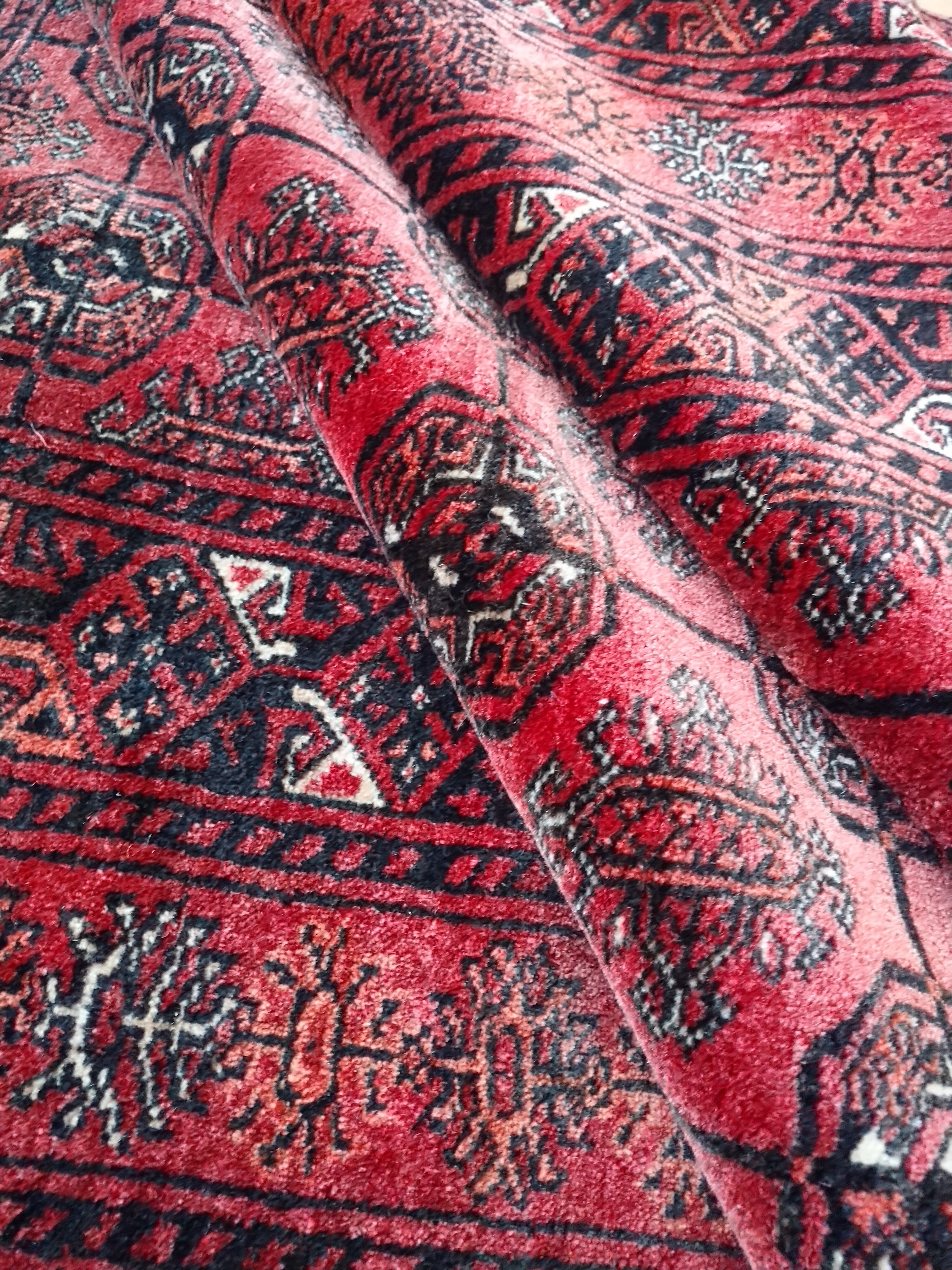 厚さはあまりなく、しなやかで扱いやすいと思います。ヴィンテージならではの色の深みや艶、風合いを楽しんでいただけます。薄いので家具の下に敷くのにも適しています。
