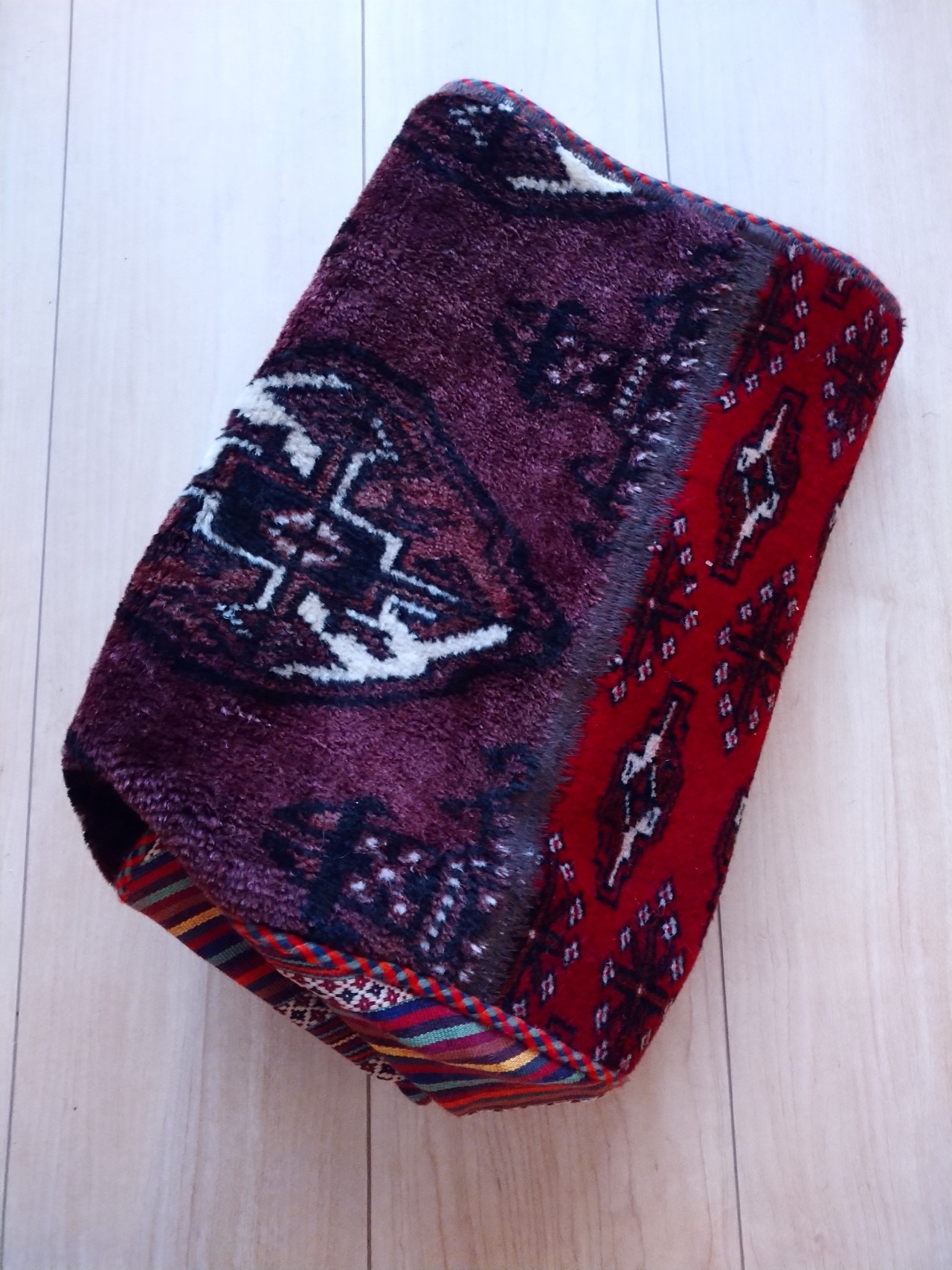 ヴィンテージのトライバルラグをリメイクして作ったものなので1点ものです。