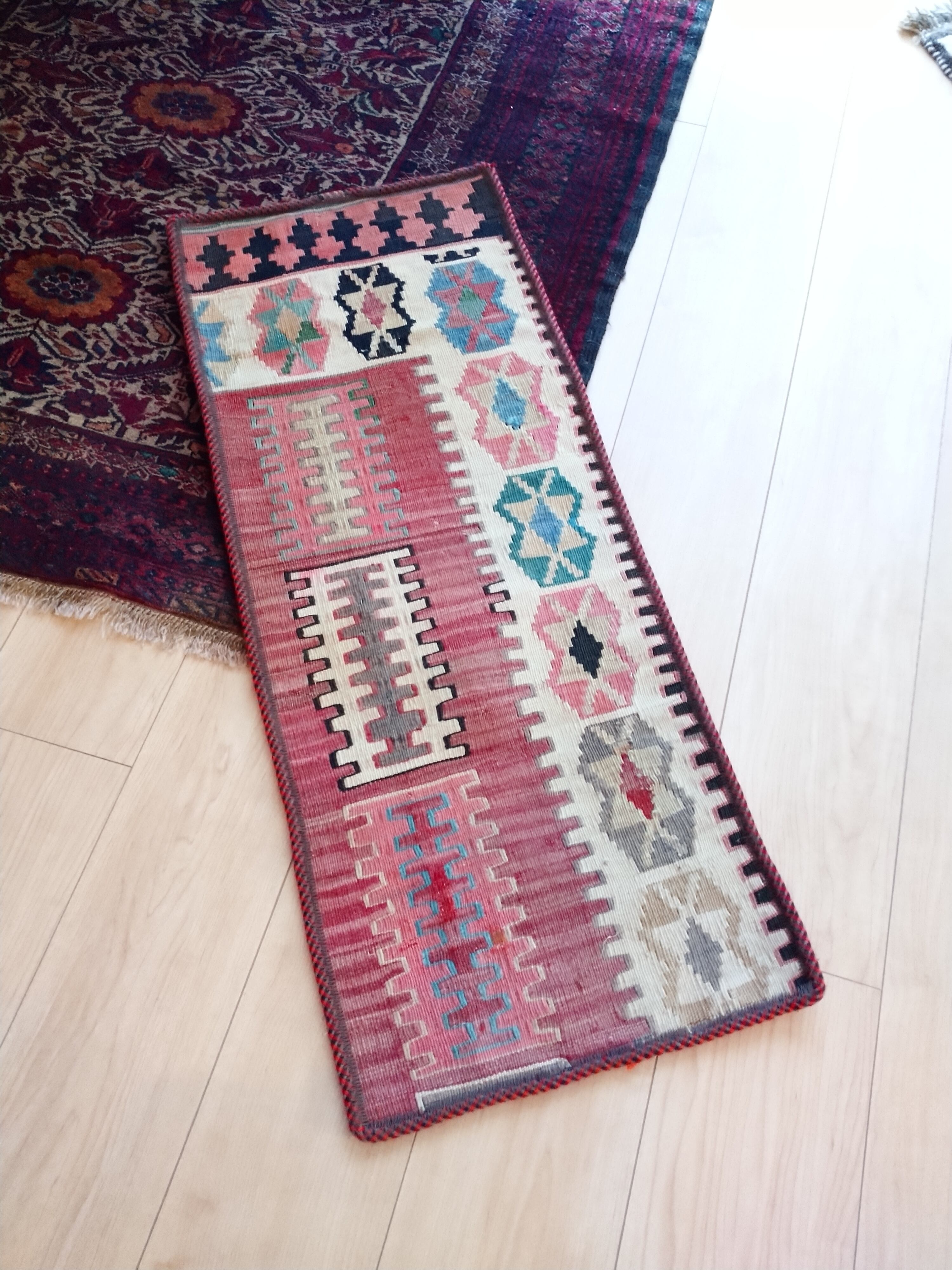 オールドキリムをリメイクして作ったランナーですので、1点ものです。