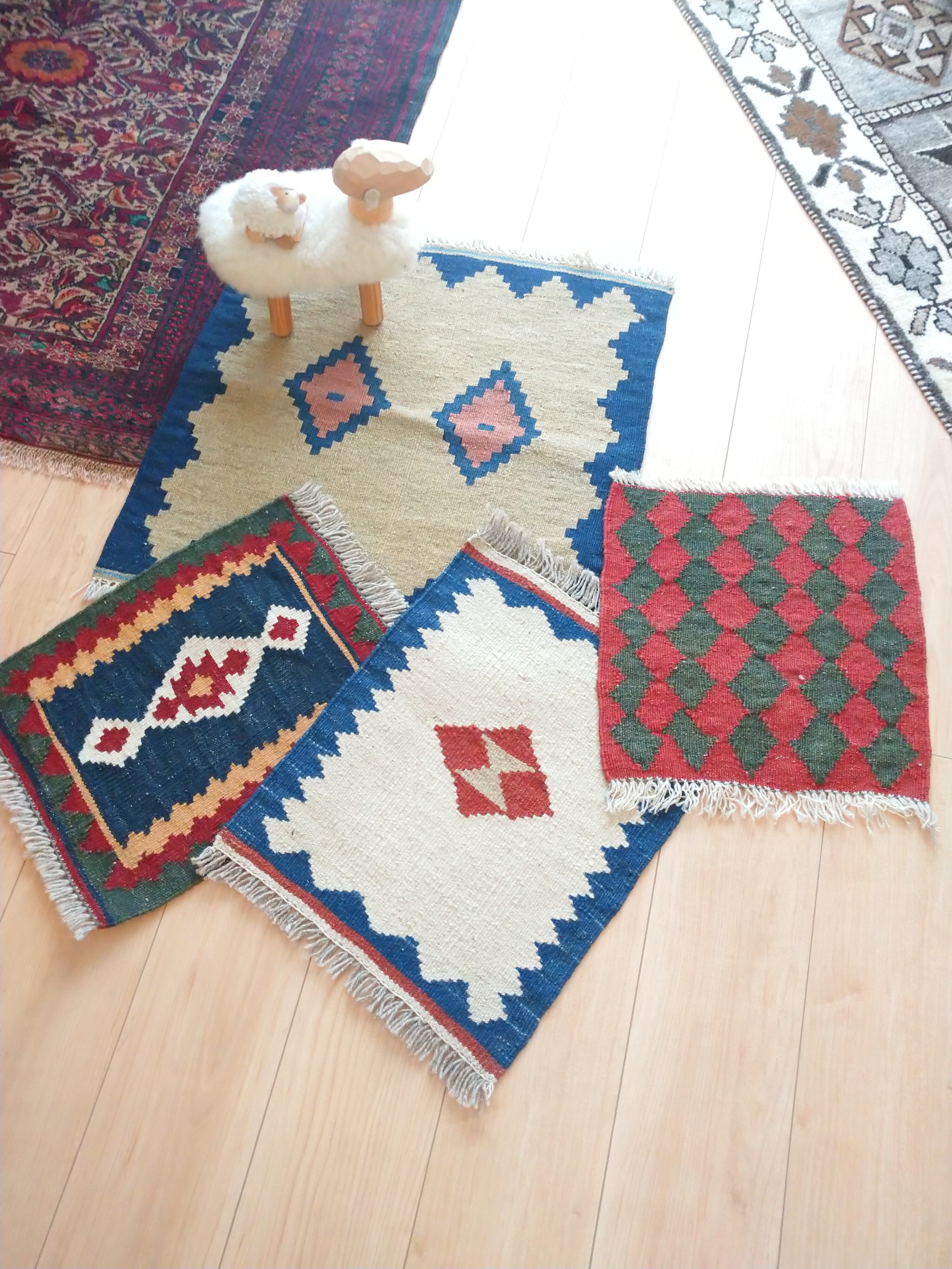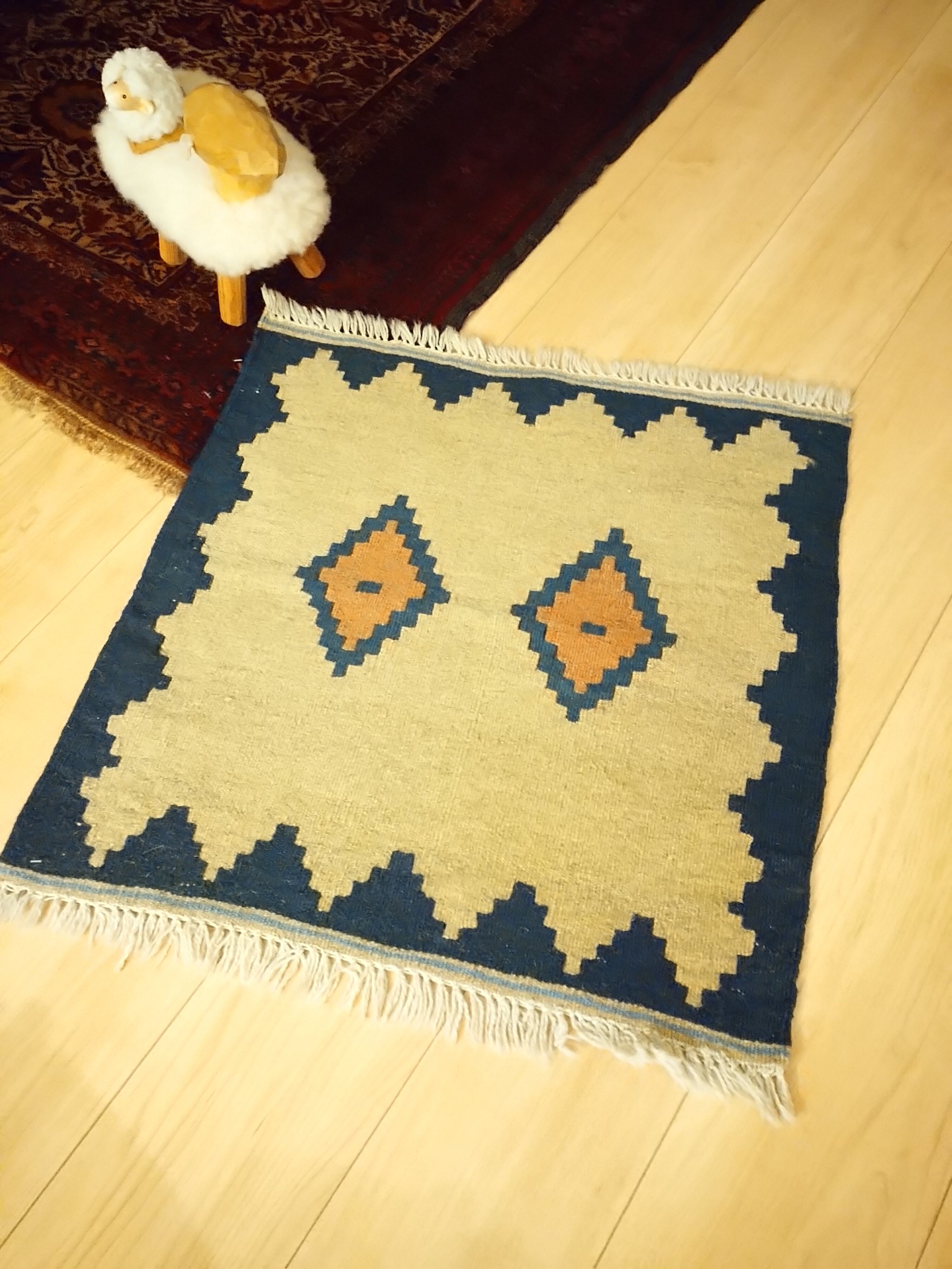珍しい正方形のキリムです。
